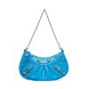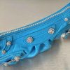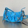 Balenciaga Women Le Cagole Mini Purse with Chain Crocodile Embossed with Rhinestones-Blue