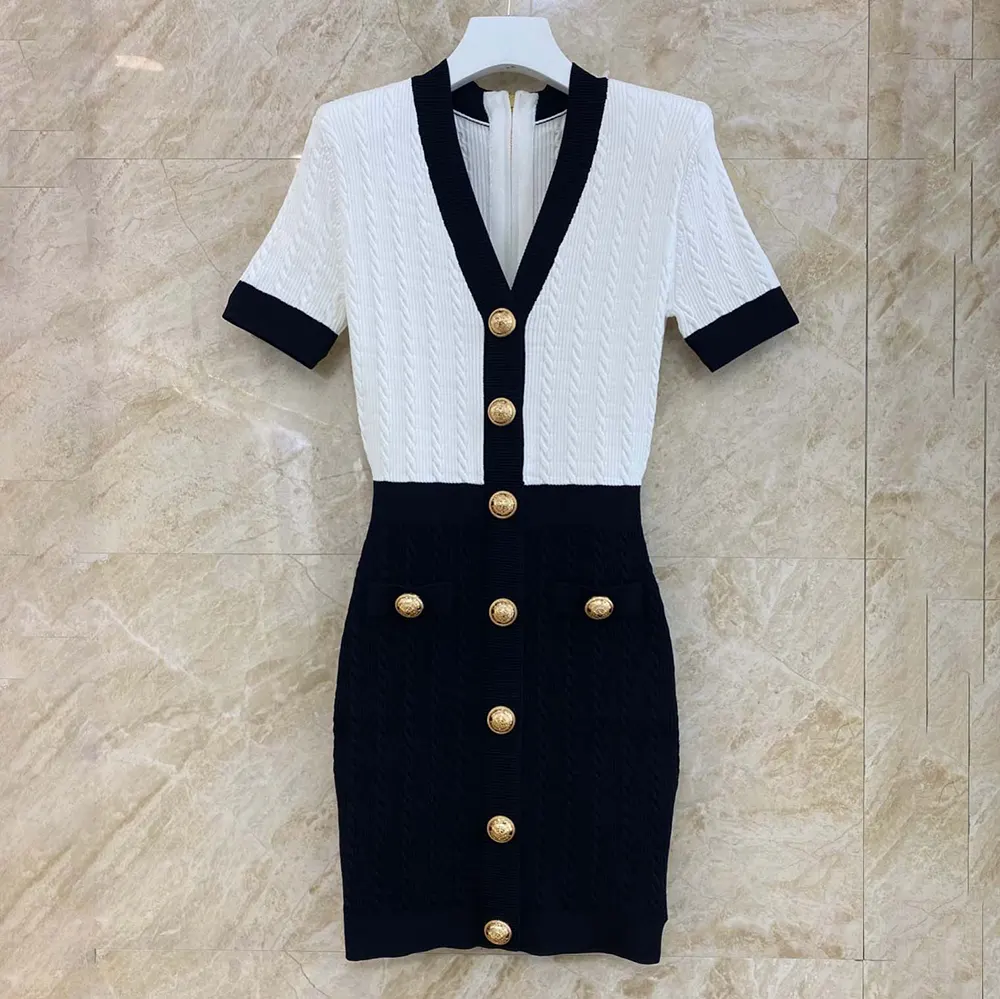 Specification: Balmain Women Two-Tone Cable-Knit Bodycon Dress FF1R6033KI50