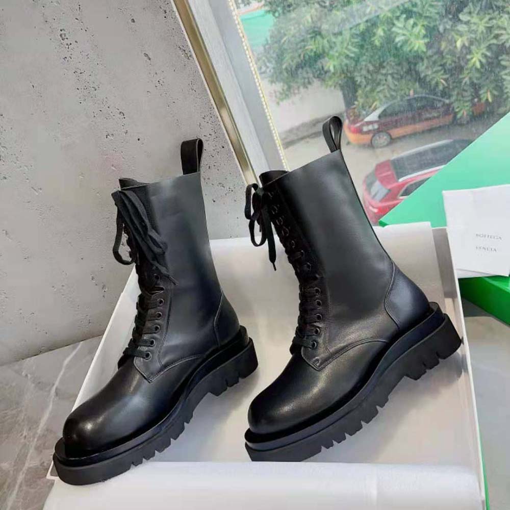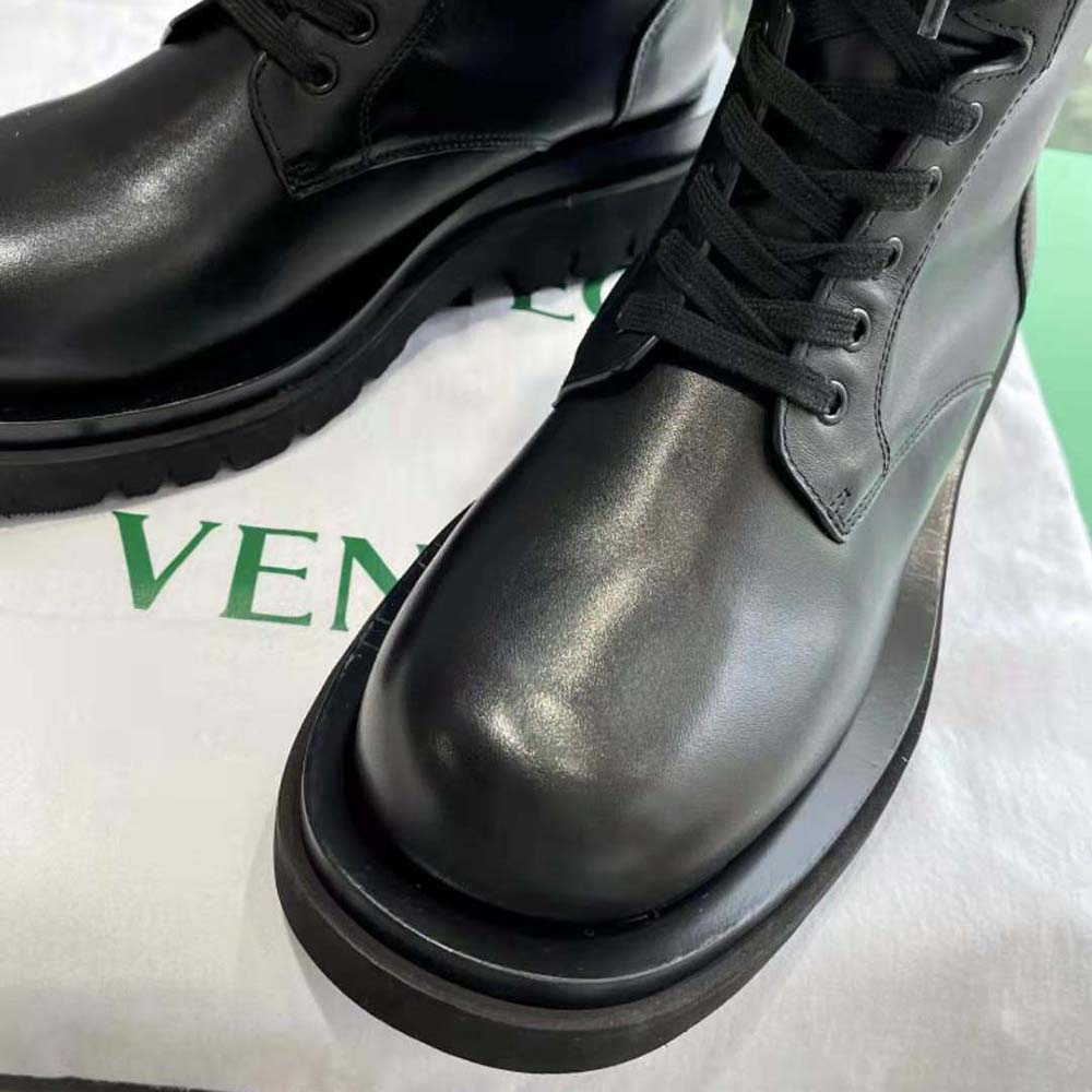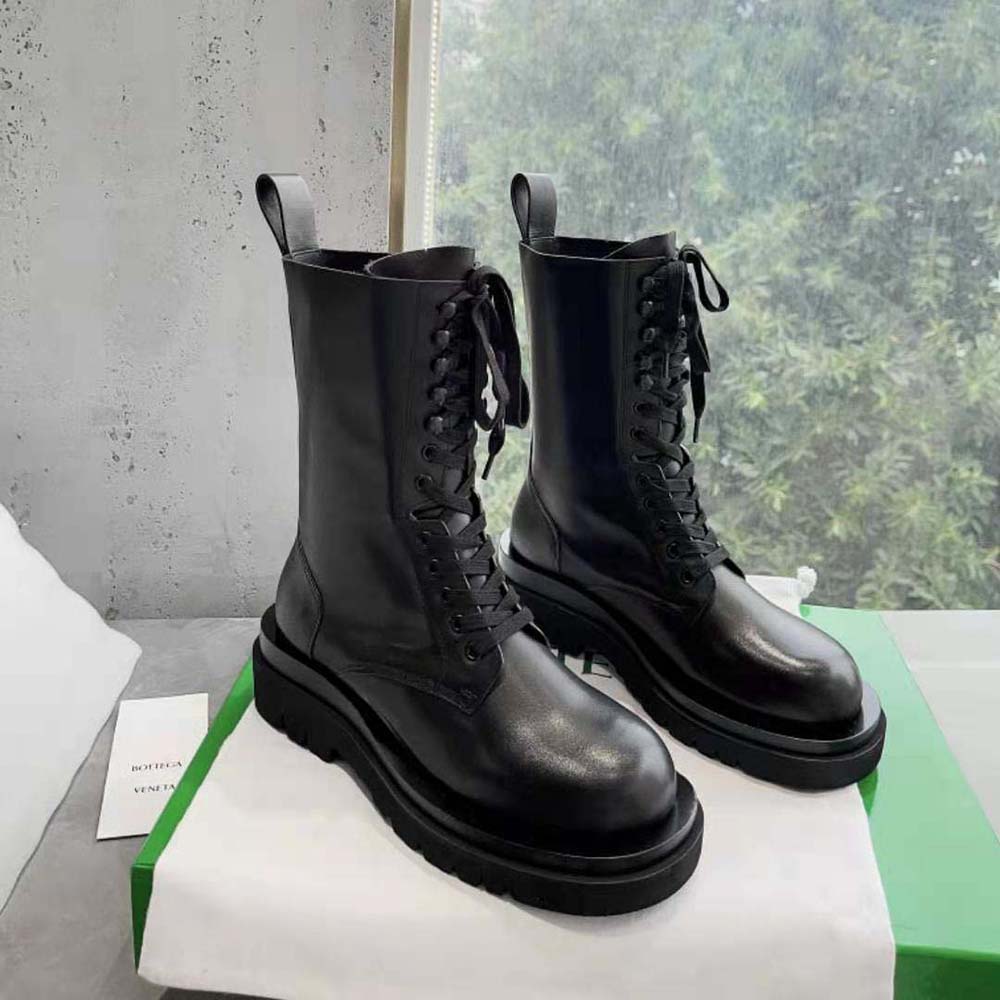 Bottega Veneta Unisex Lug Lace-Up Boot in Calfskin Leather-Black