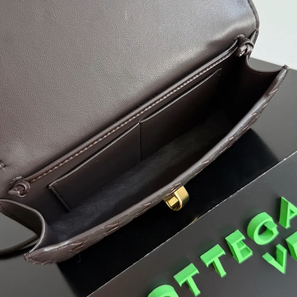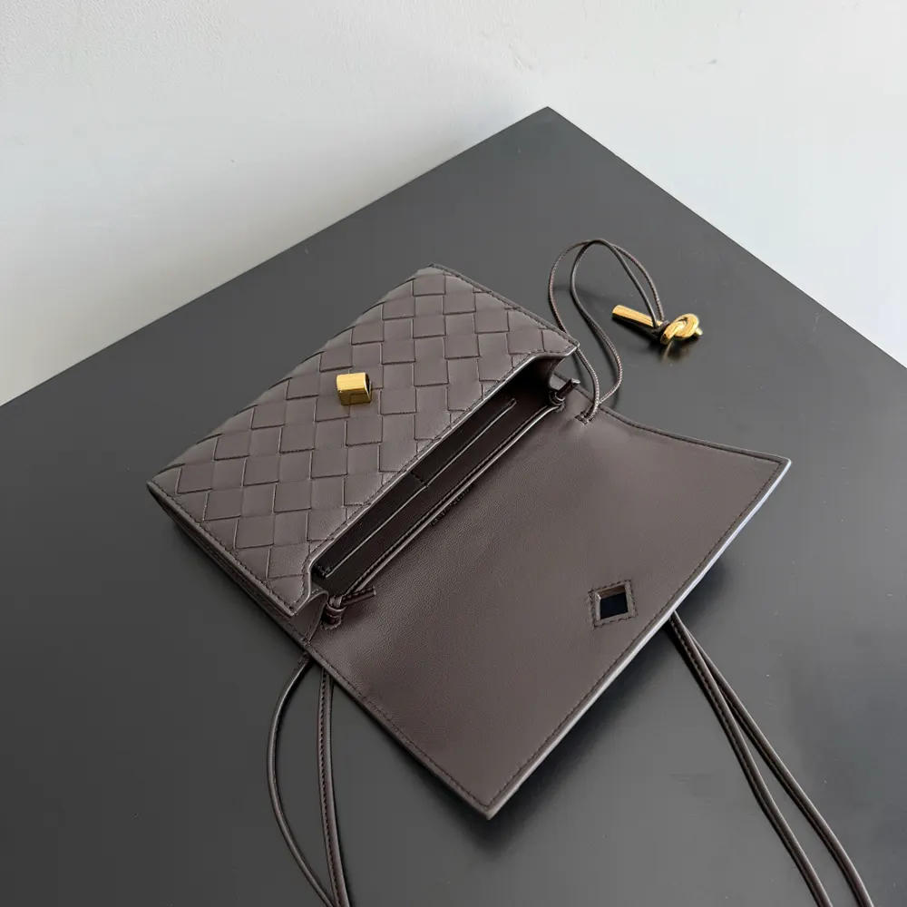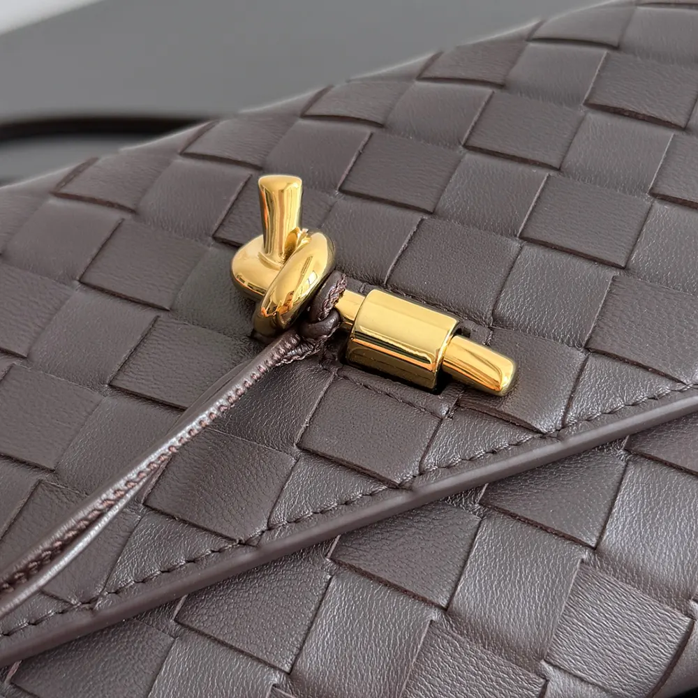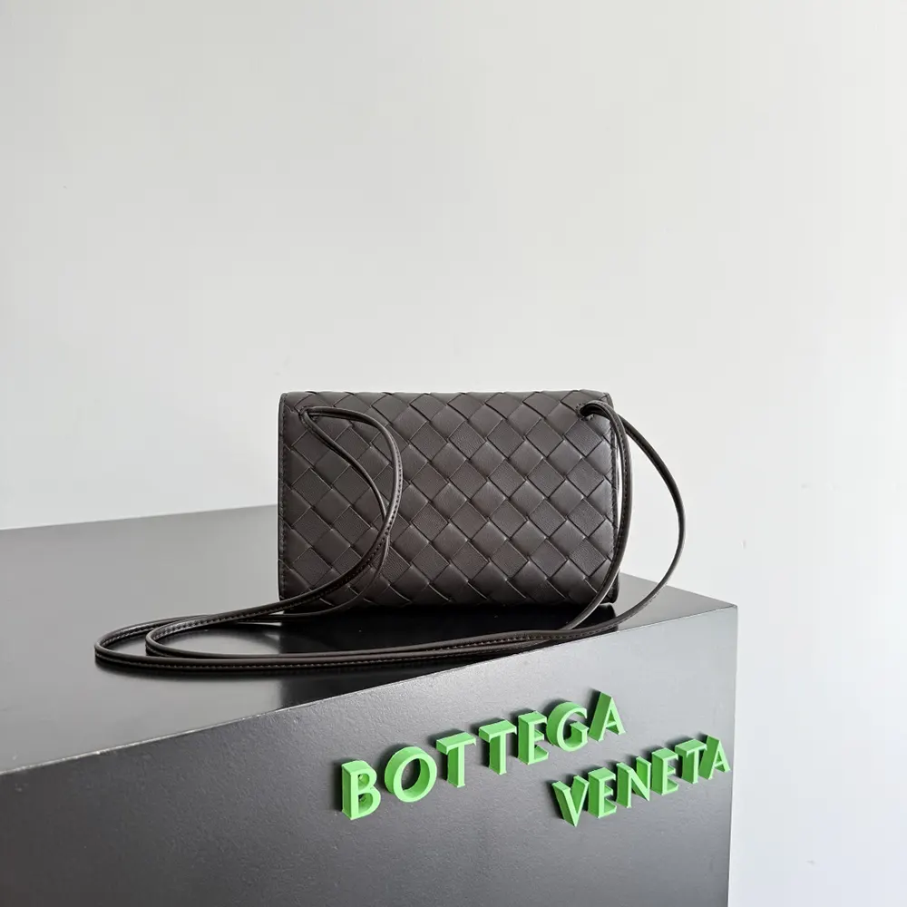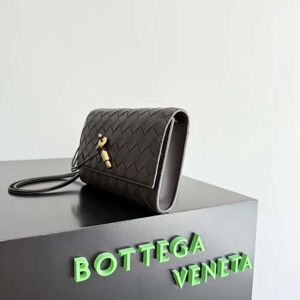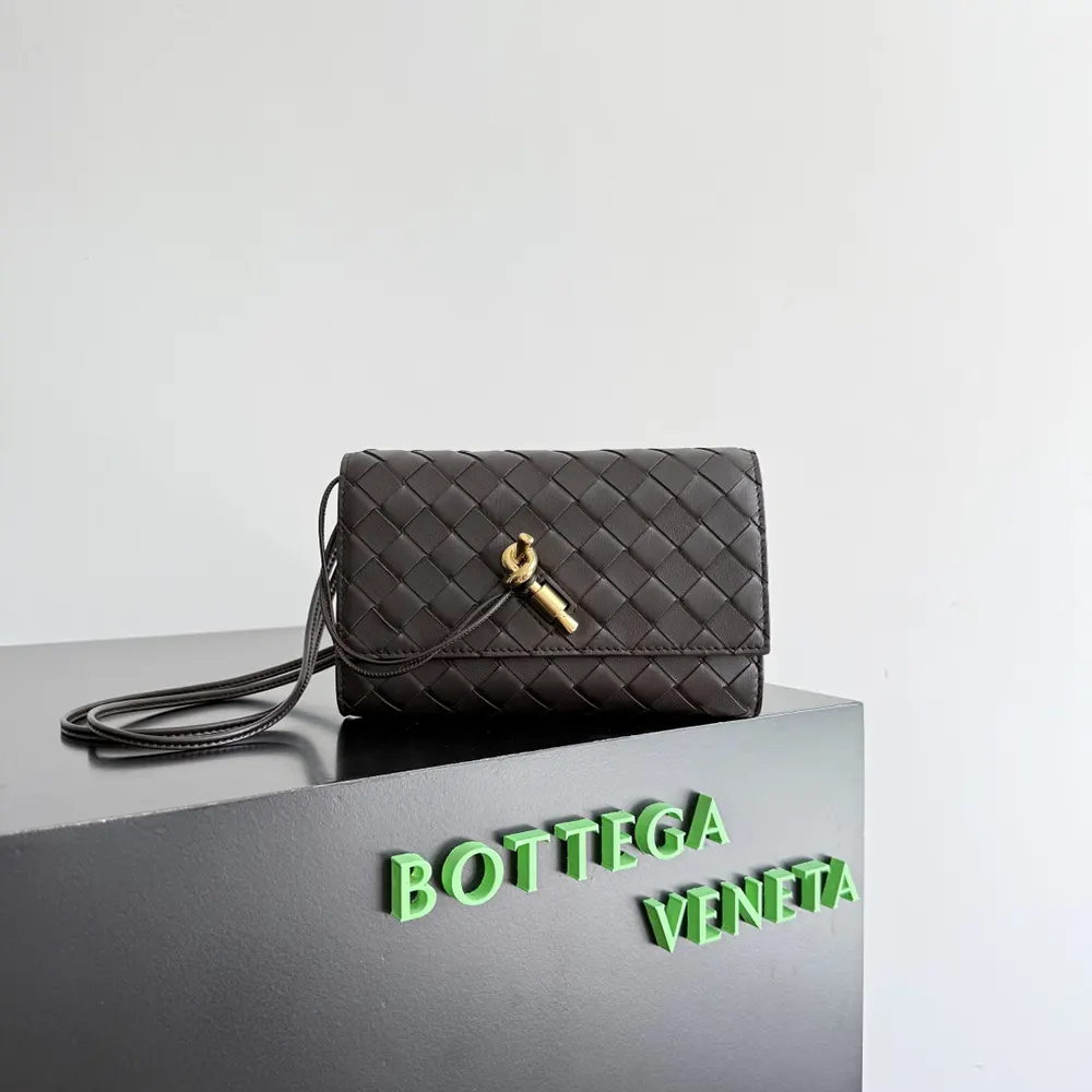 • Pouch in Intrecciato nappa leather with signature knot closure and sliding strap.