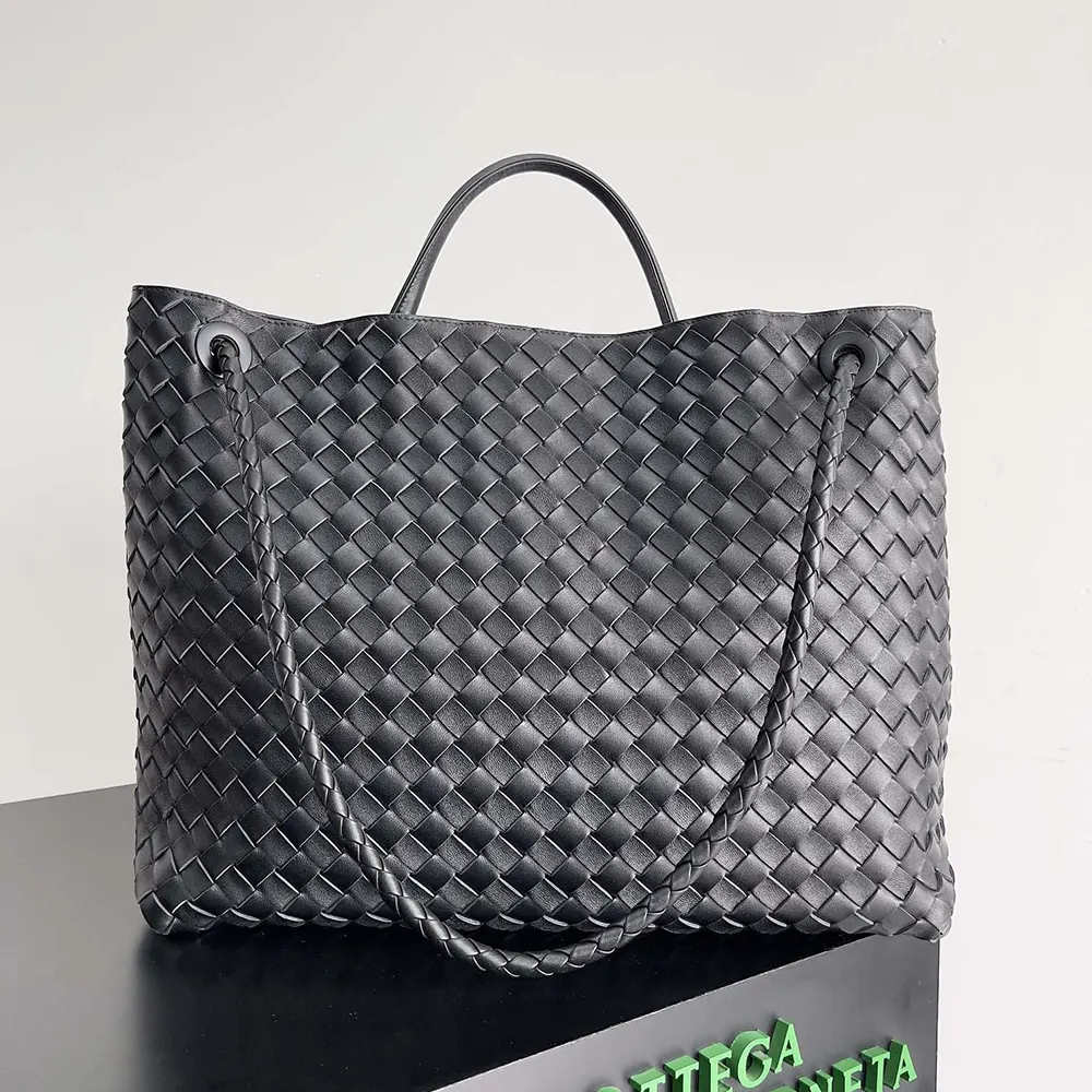 - Large Intrecciato leather top handle bag with sliding cross-body strap
