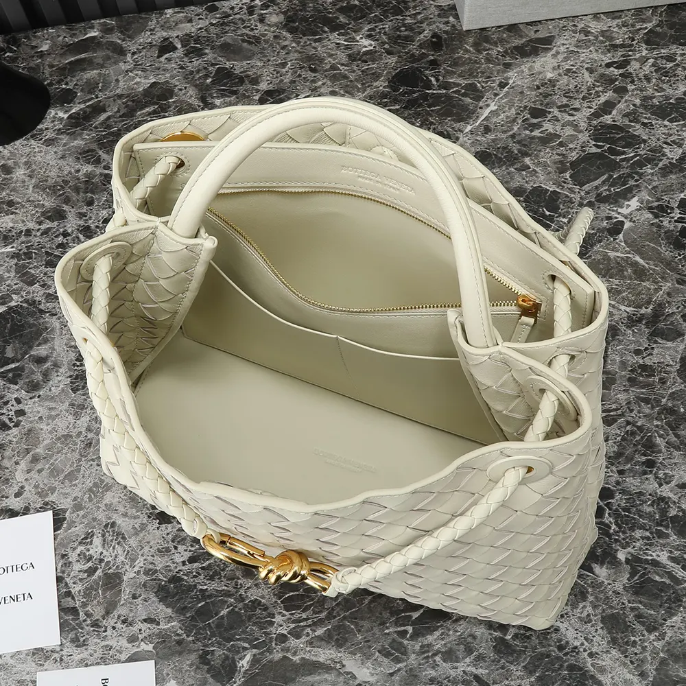 Specification: Bottega Veneta Women Medium Andiamo in Supple Intrecciato Leather-White