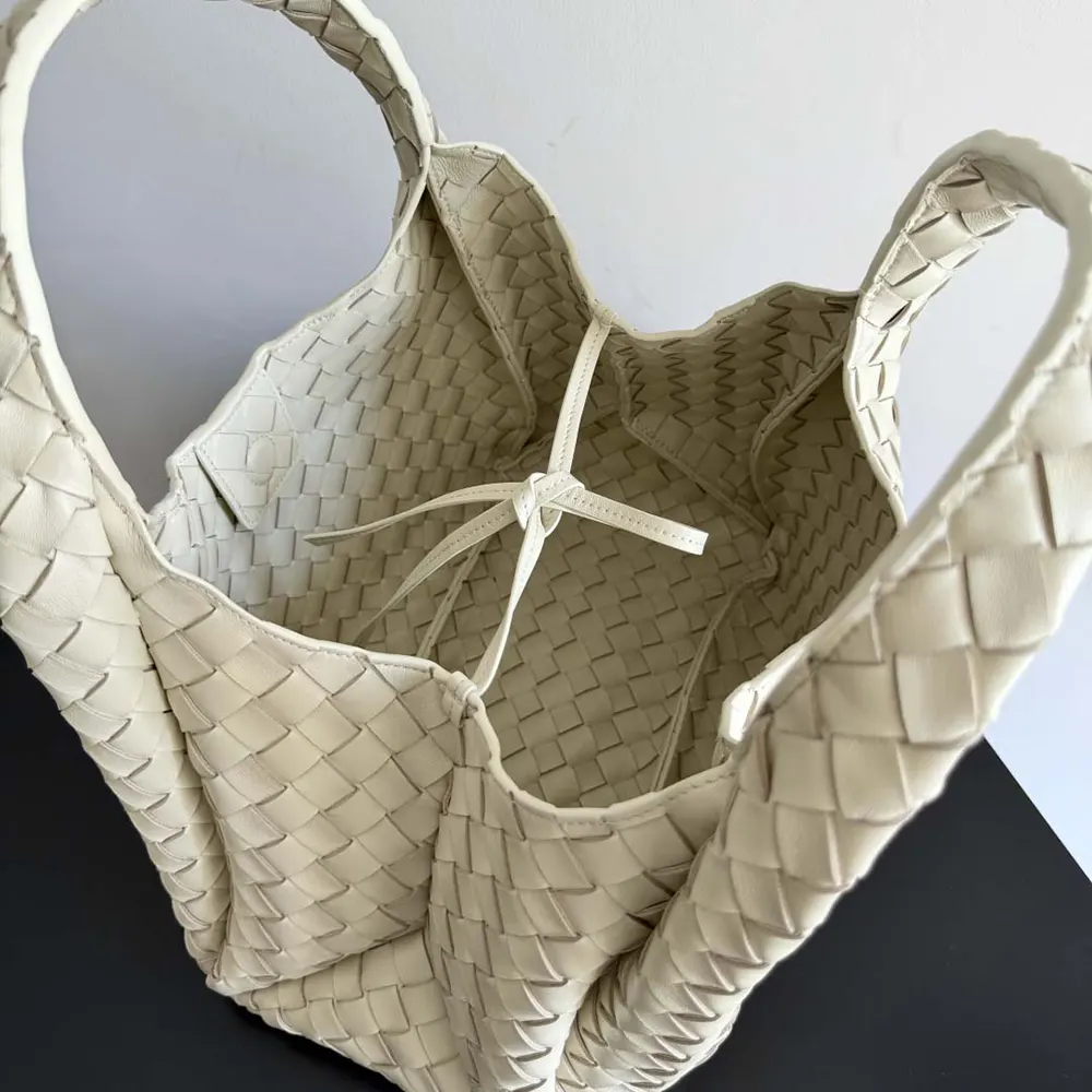 - Shoulder bag with archival silhouette in supple Intrecciato leather with tie closure.