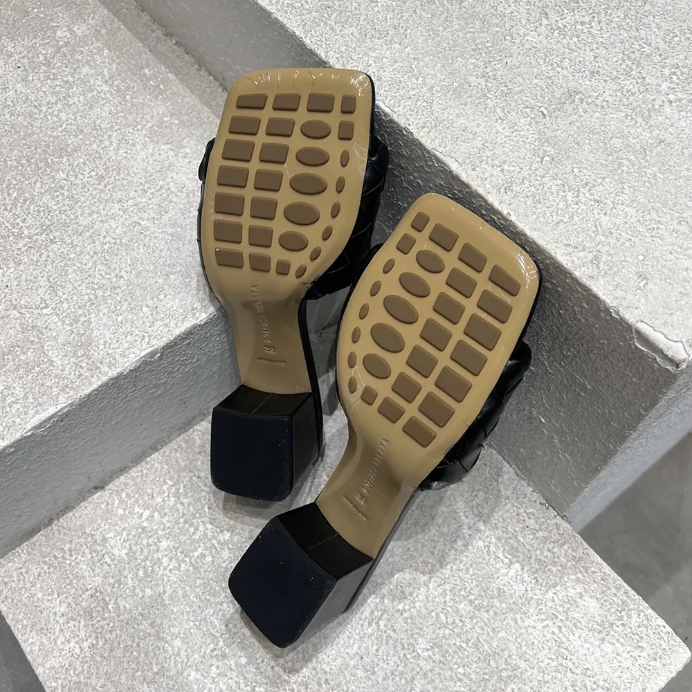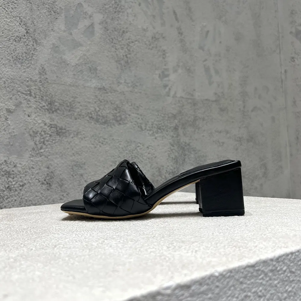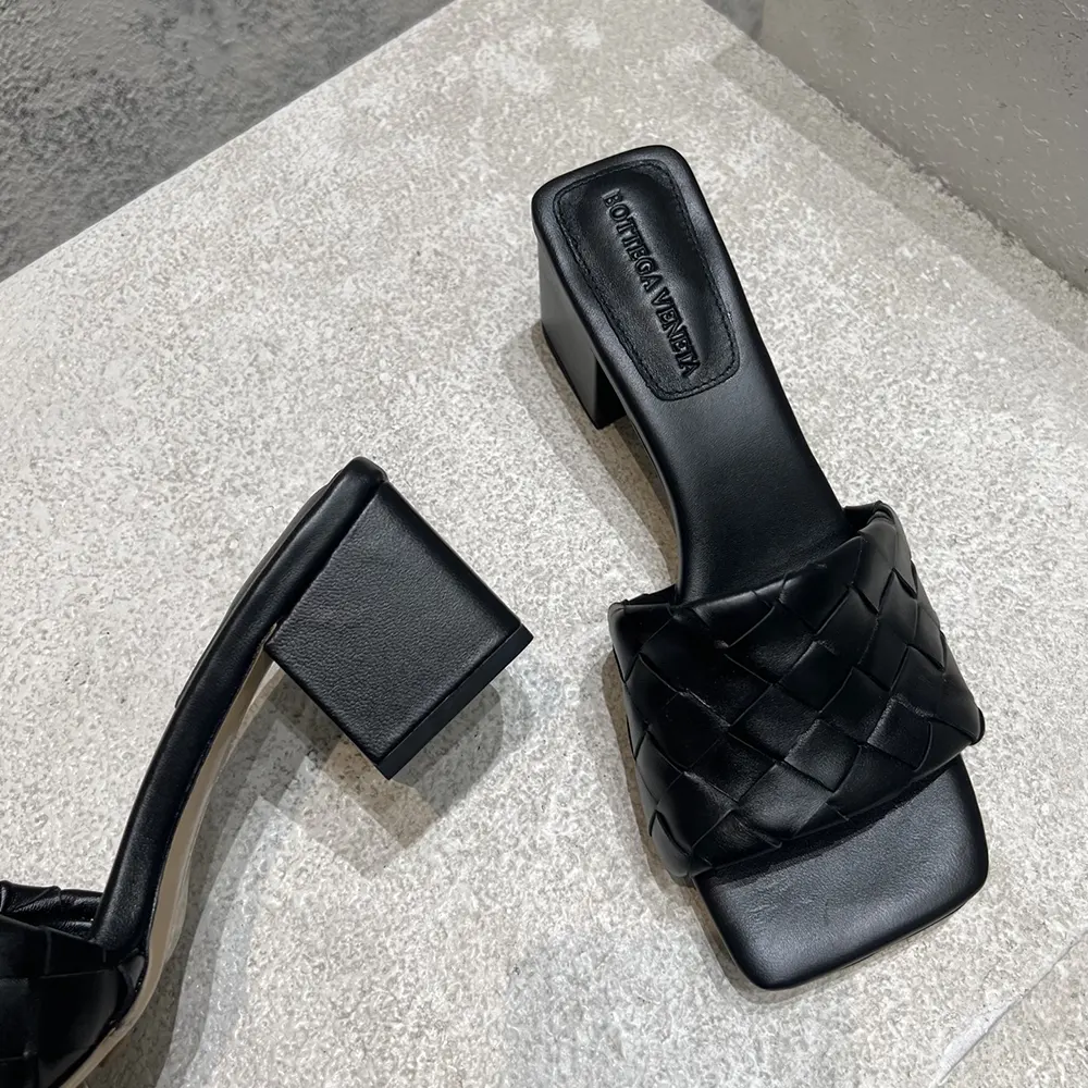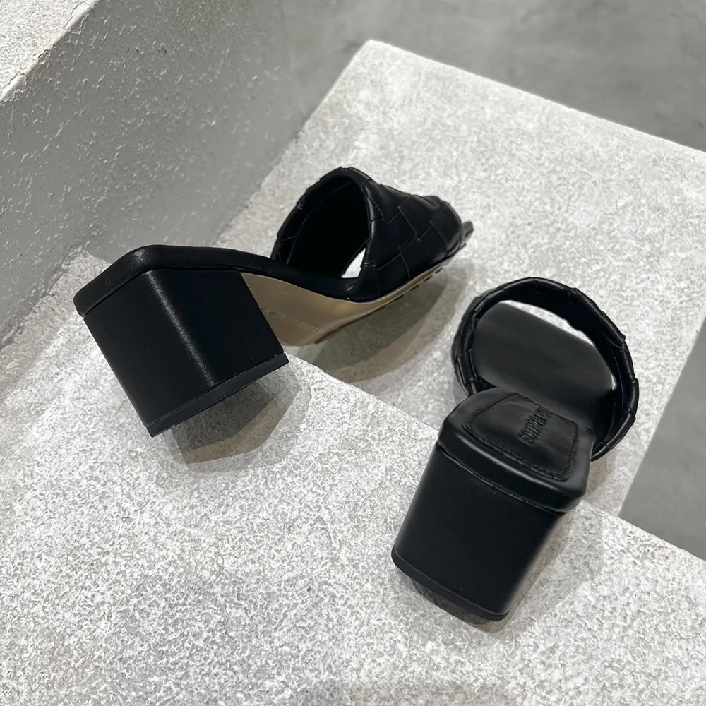- Kitten heel mule sandal in soft Intrecciato leather.