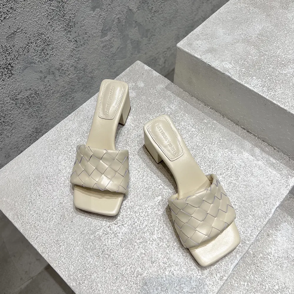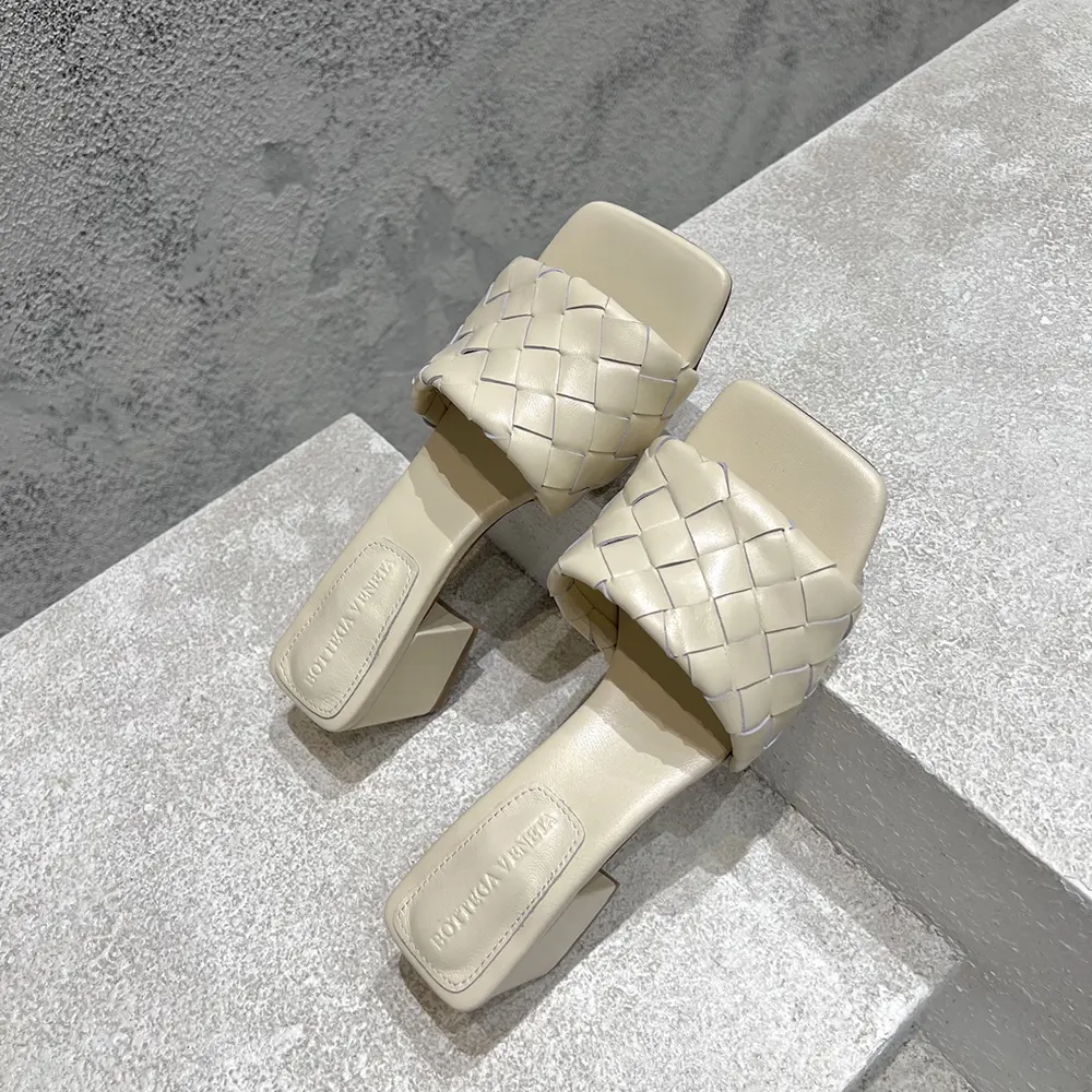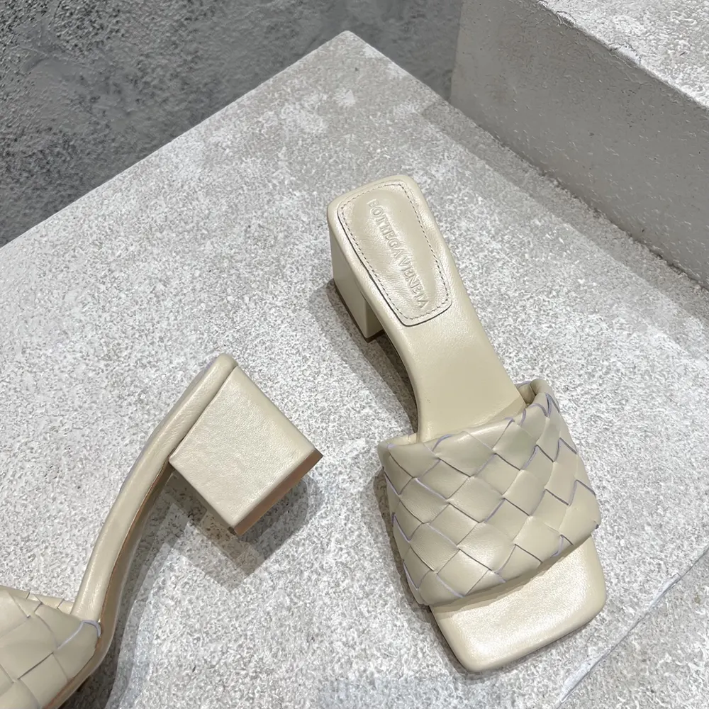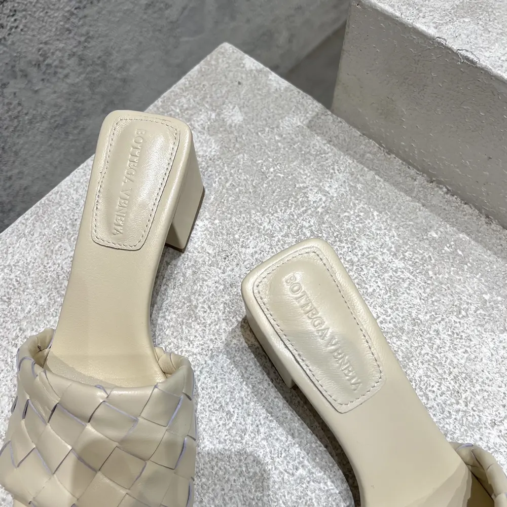 - Kitten heel mule sandal in soft Intrecciato leather.