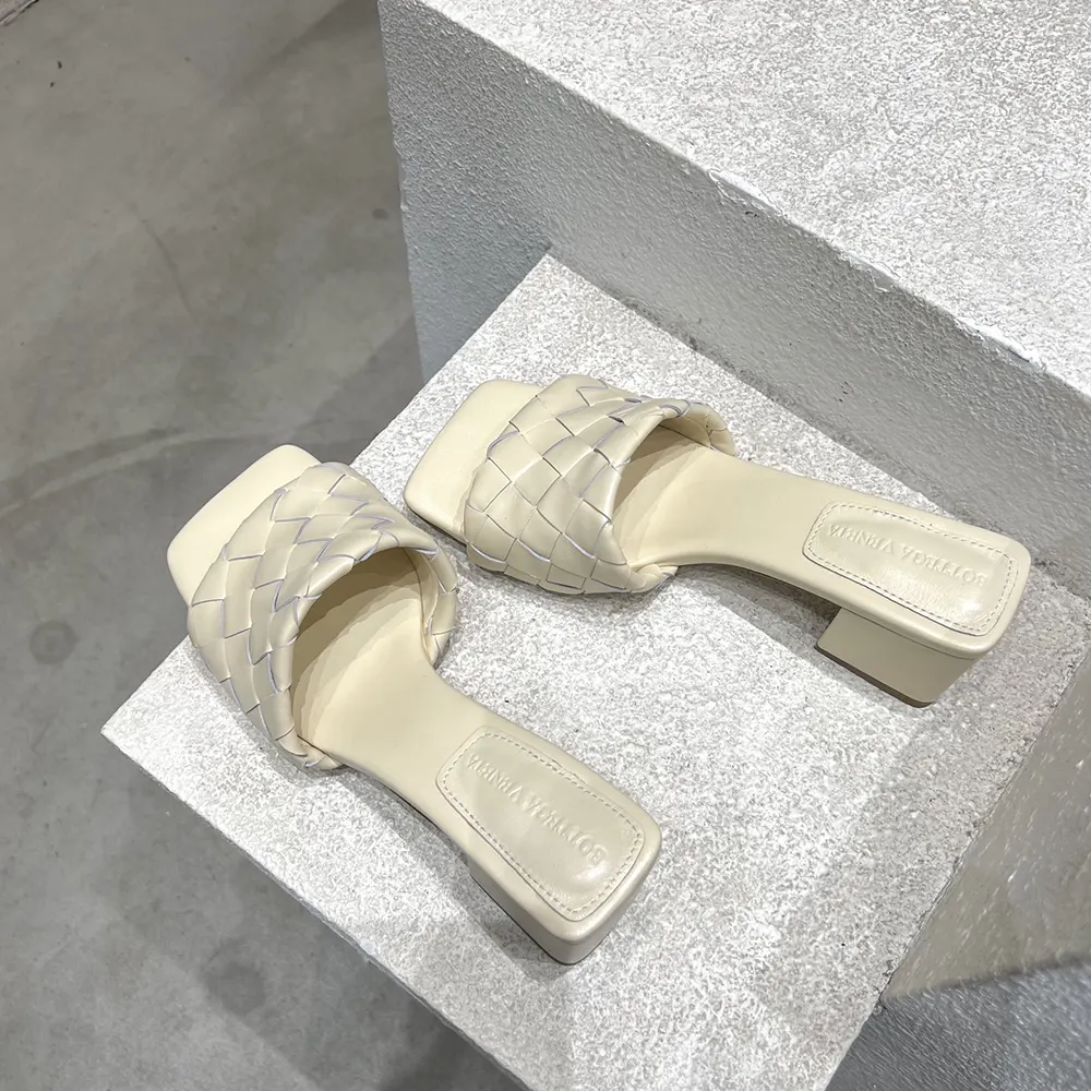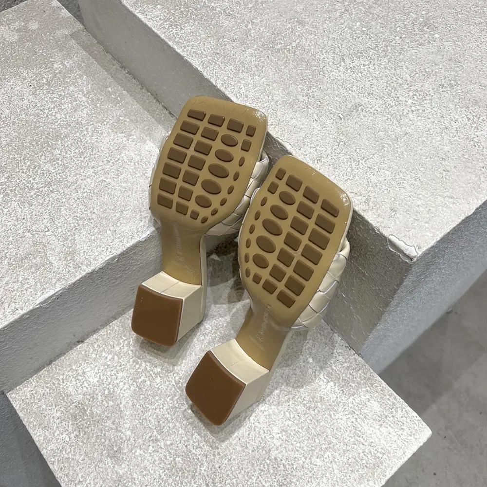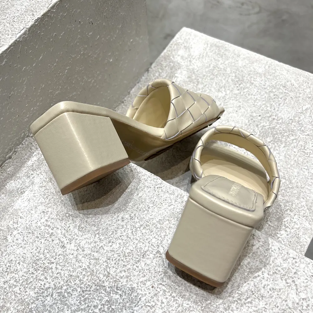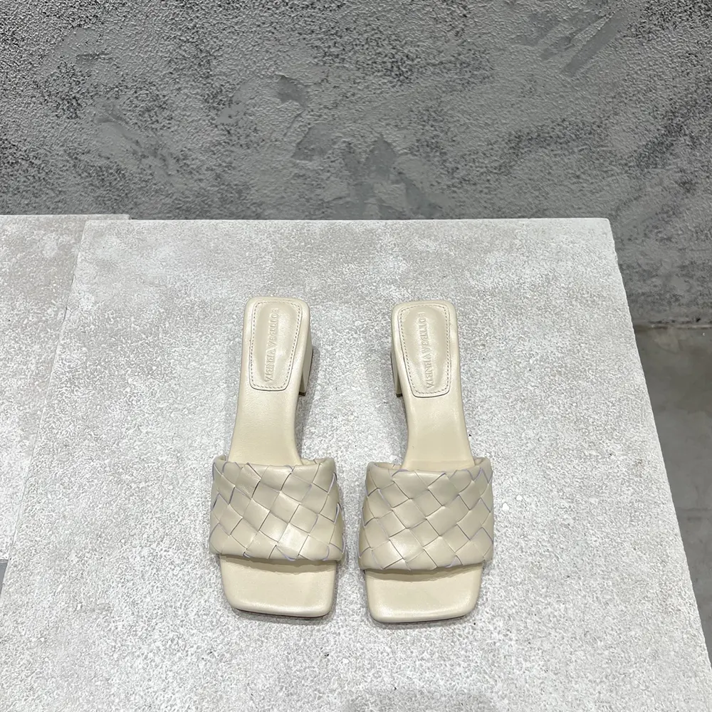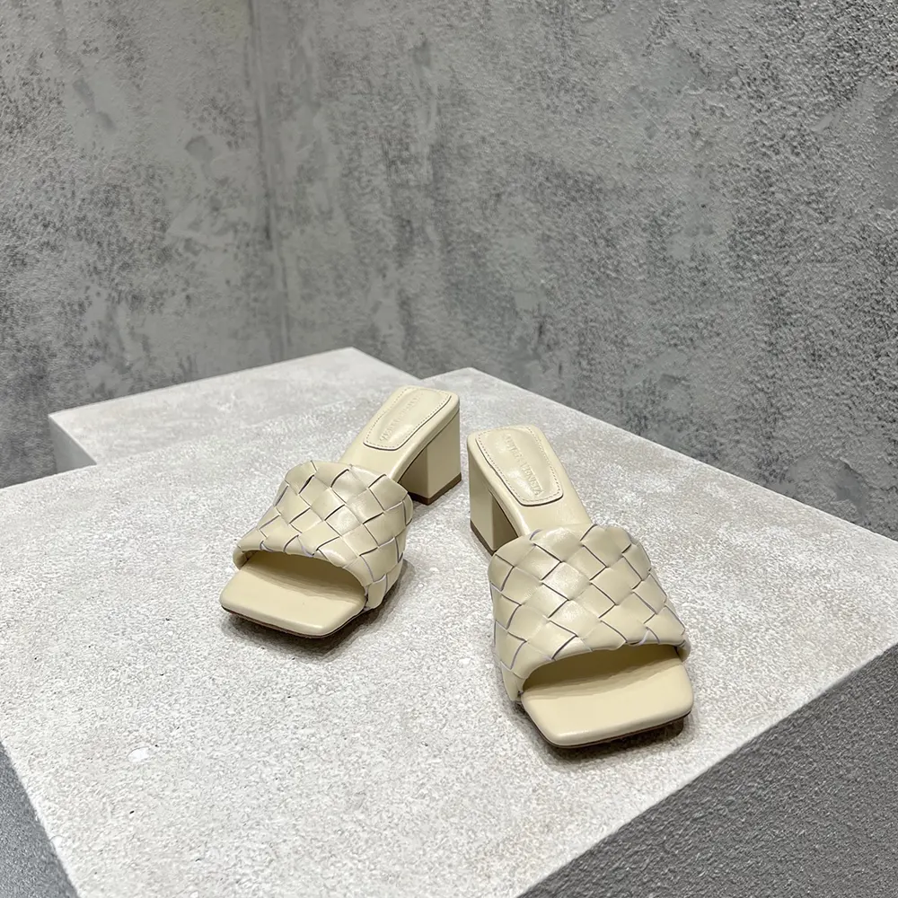 - Kitten heel mule sandal in soft Intrecciato leather.