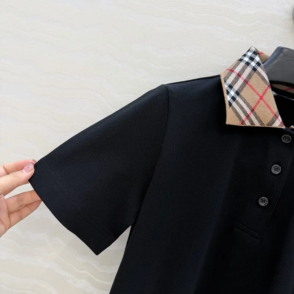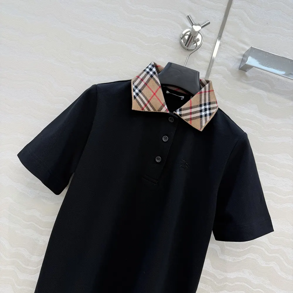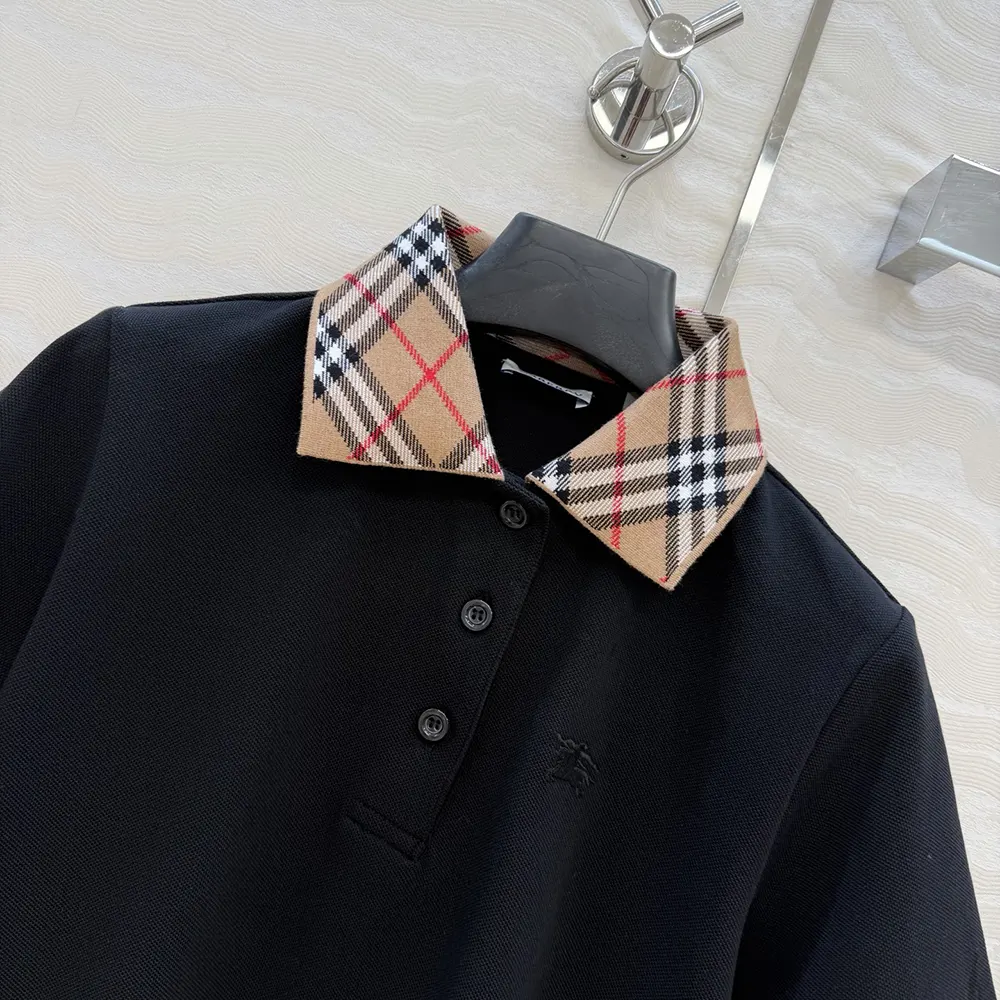 Specification: Burberry Women Check Collar Cotton Polo Shirt-Black 81193921