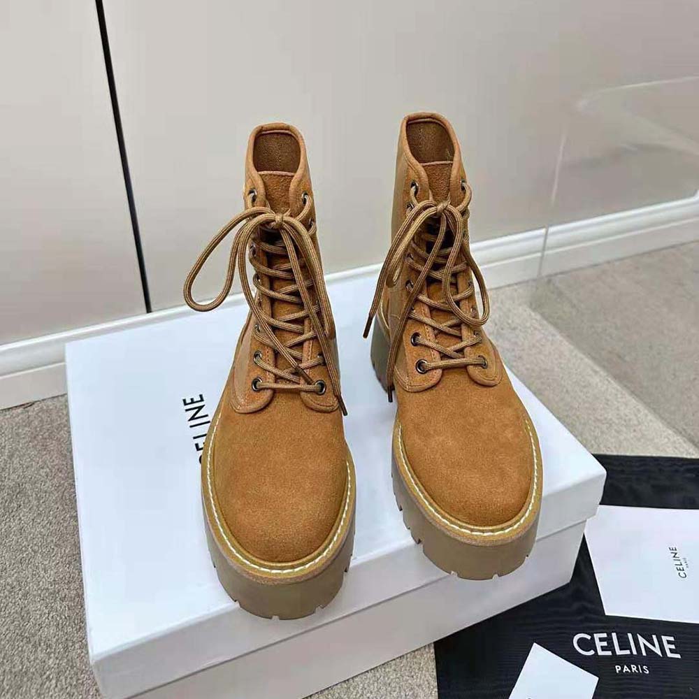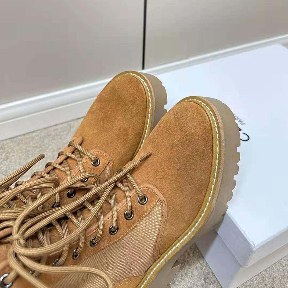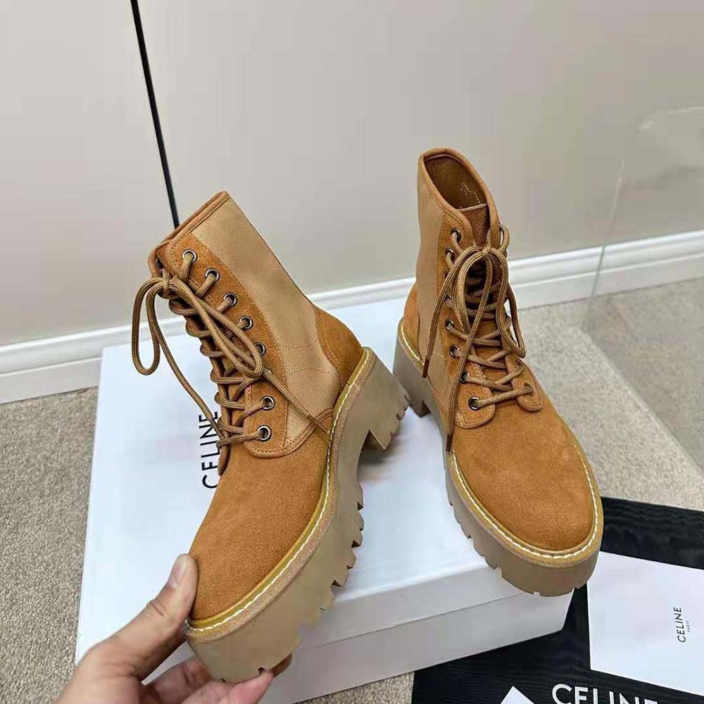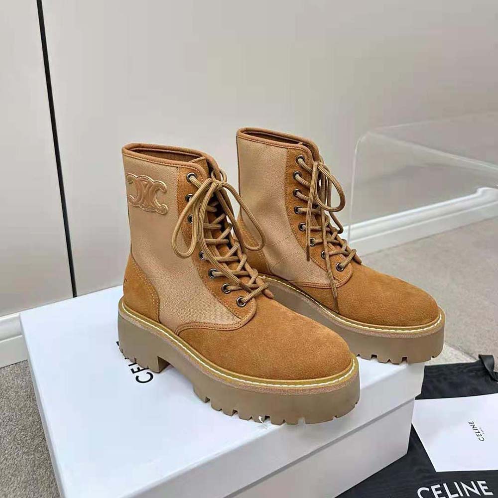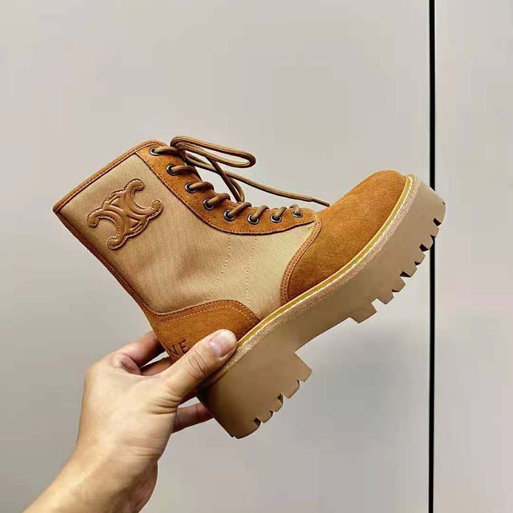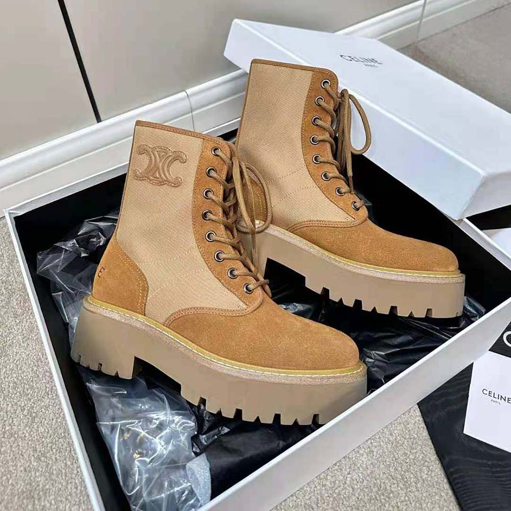 Specification: Celine Women Bulky Lace-up Boot with Triomphe in Nylon & Suede Calfskin