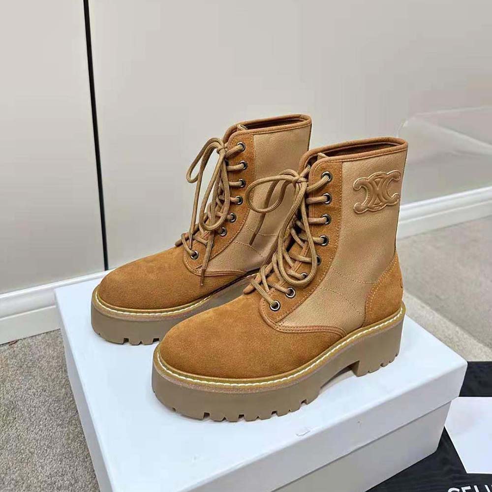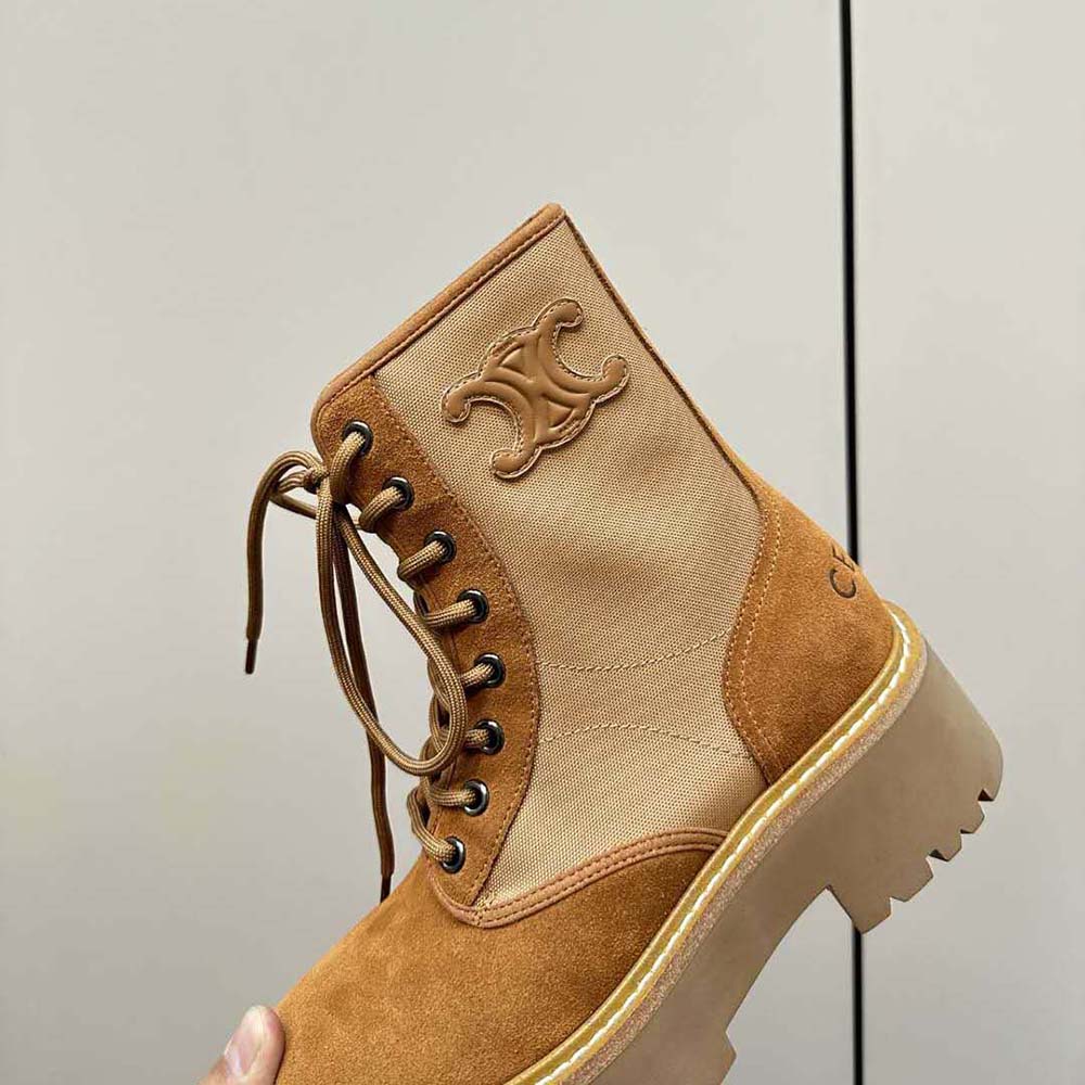 Celine Women Bulky Lace-up Boot with Triomphe in Nylon & Suede Calfskin