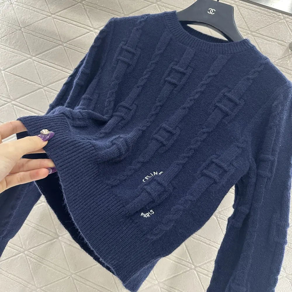 Specification: Celine Women Crewneck Sweater In Chains Cashmere-Navy RY0MF0Y51