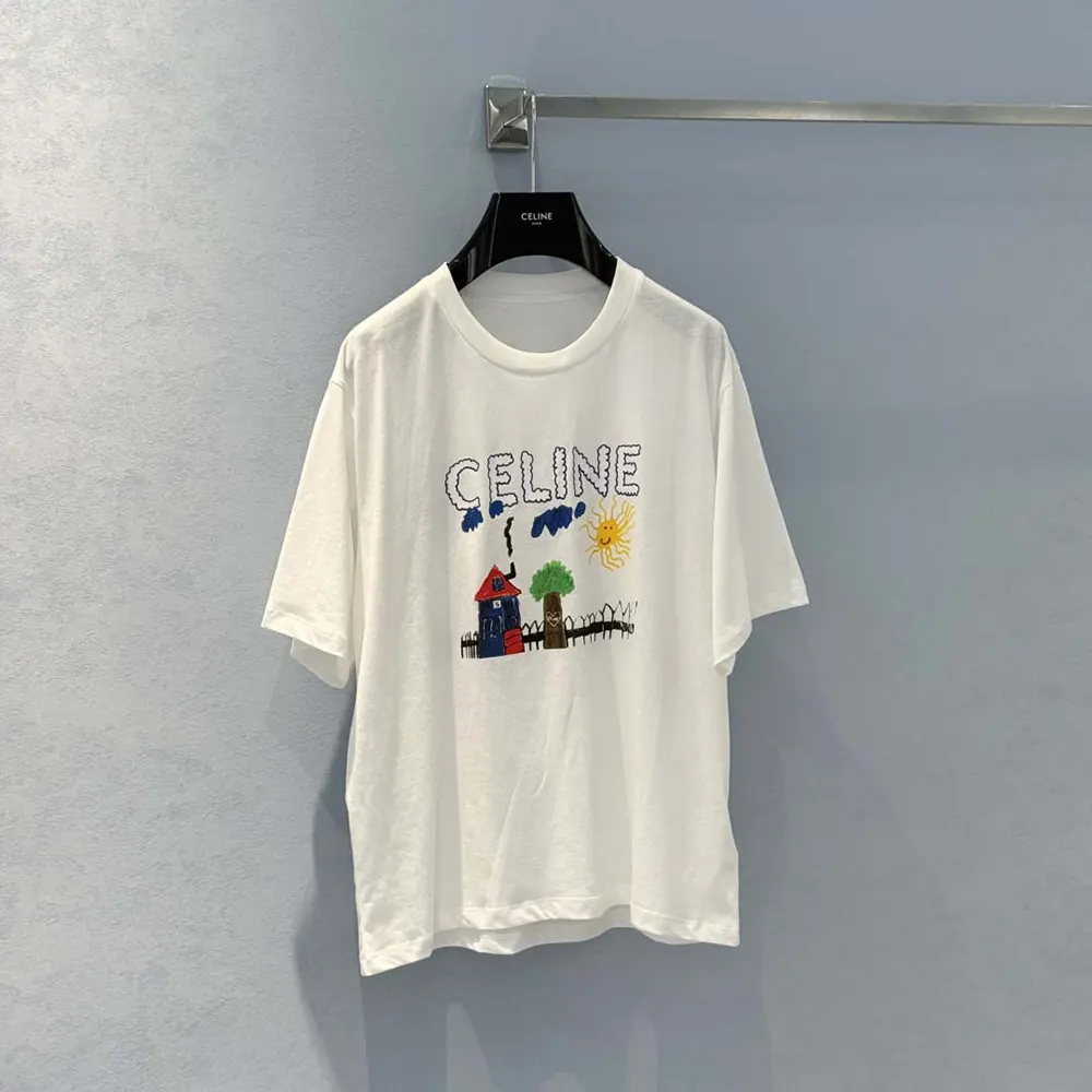 Specification: Celine Women Loose T-Shirt In Cotton Jersey-White RX0D5507Z