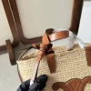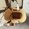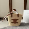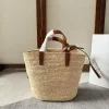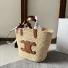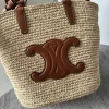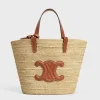 Celine Women Teen Supple Celine Classic Panier in Raffia and Calfskin-Tan