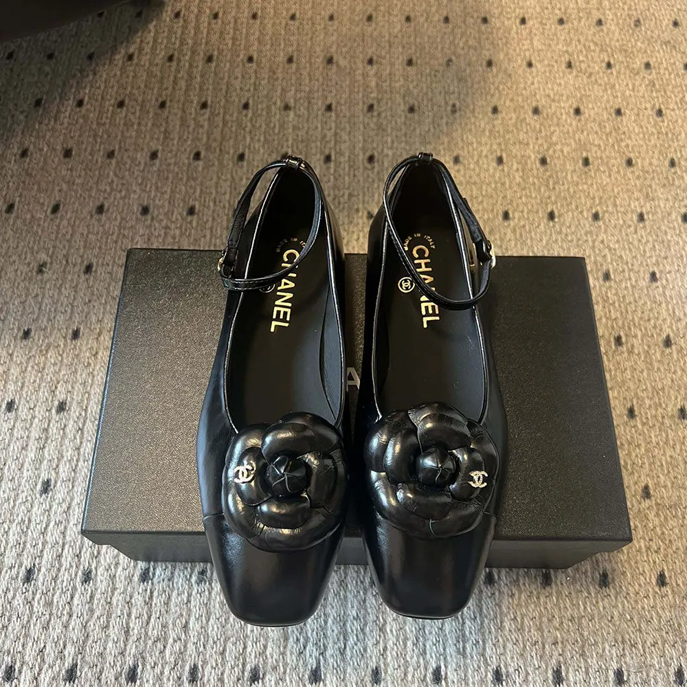 Specification: Chanel Women Ballet Flats Shiny Calfskin-Black G46520