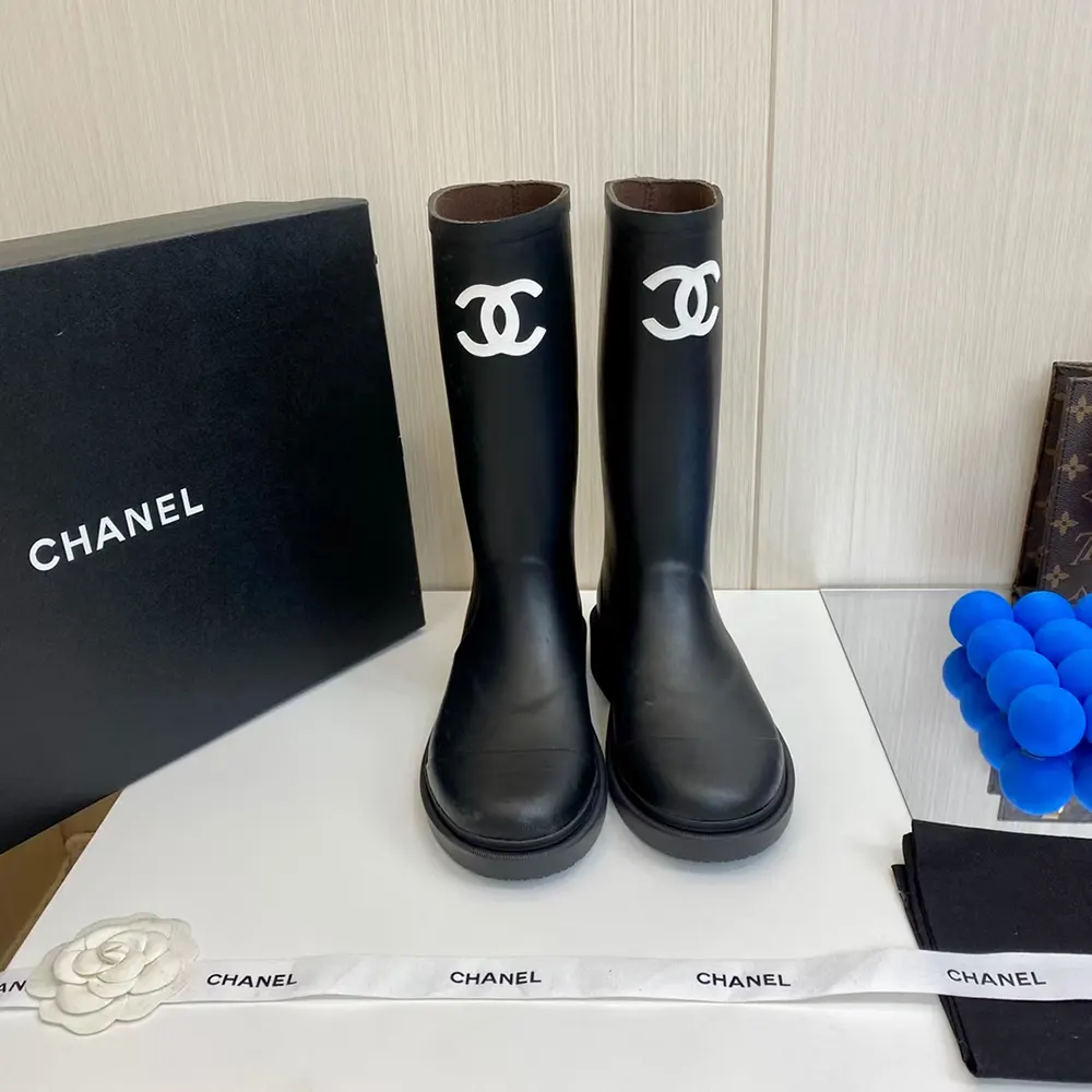 Specification: Chanel Women Caoutchouk CC High Boots-Black