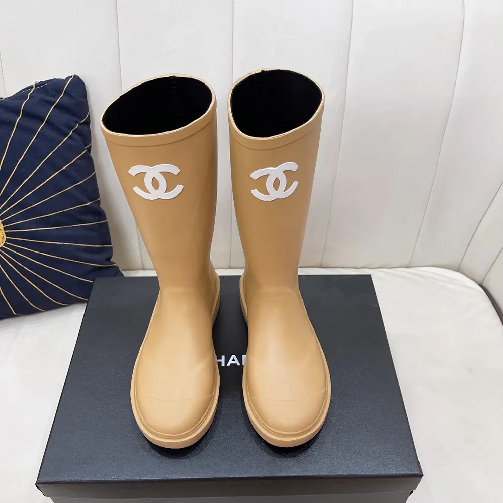 Chanel Women Caoutchouk CC High Boots-Sandy