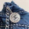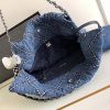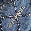 Chanel Women CC 22 Small Handbag Stitched Denim Silver Metal Blue AS3260