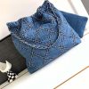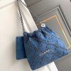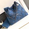 Specification: Chanel Women CC 22 Small Handbag Stitched Denim Silver Metal Blue AS3260