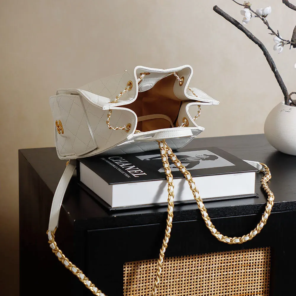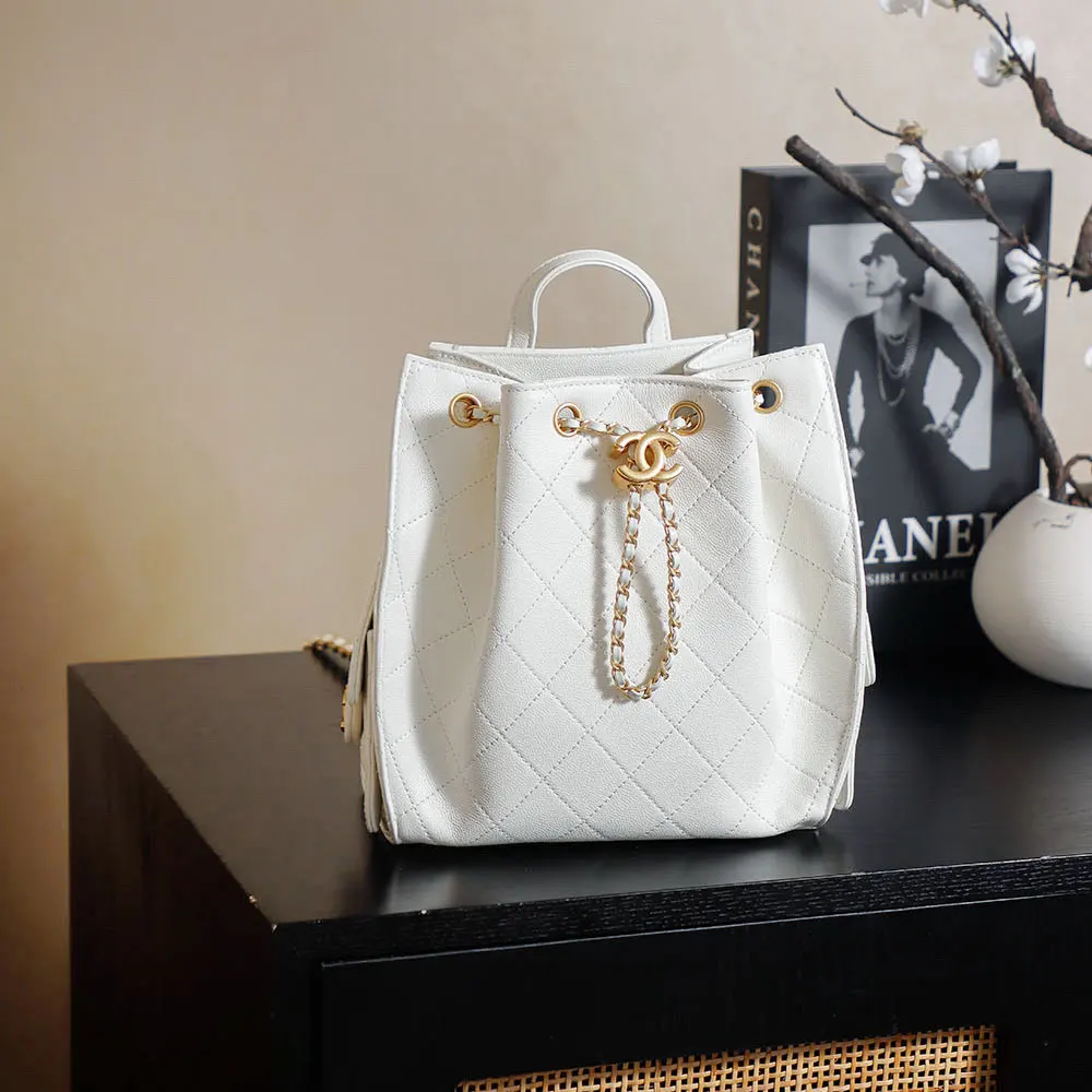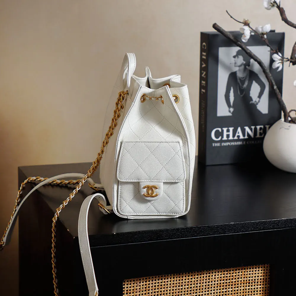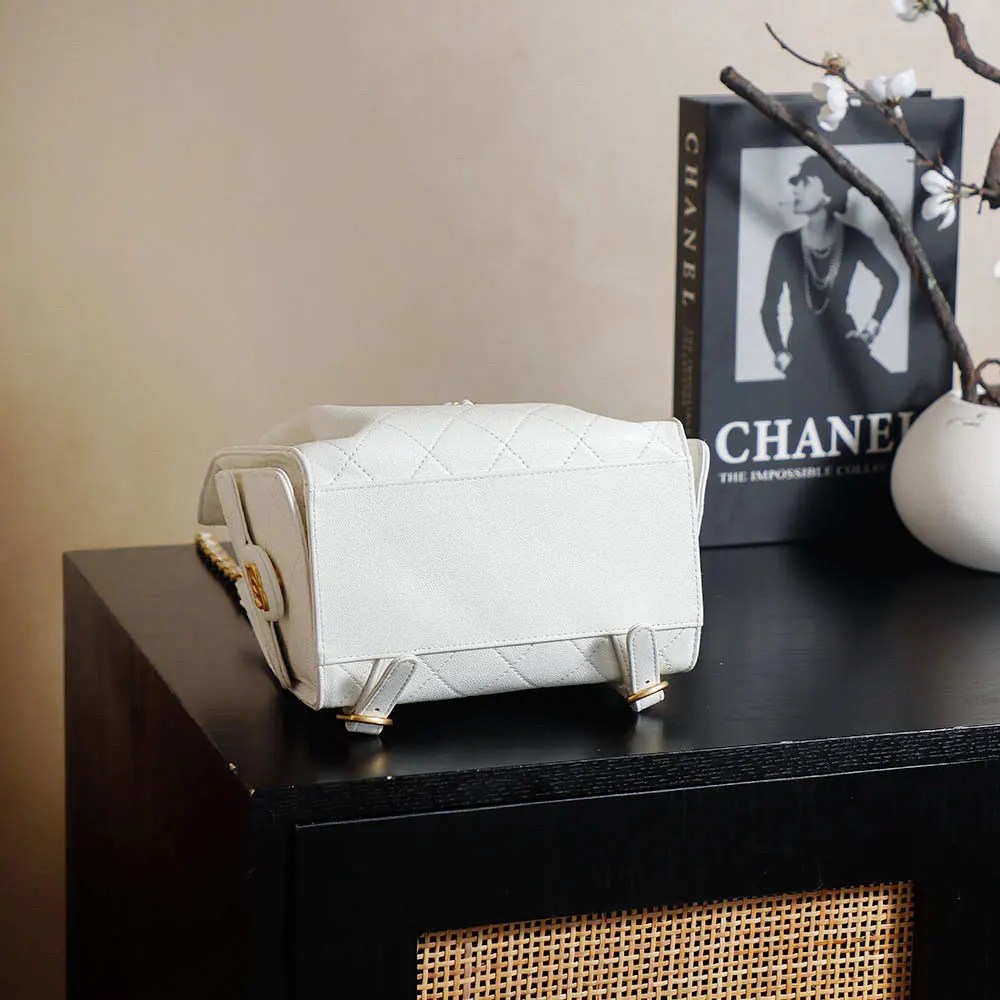 Chanel Women Chanel 25 Medium Backpack Grained Calfskin & Gold-Tone Metal White