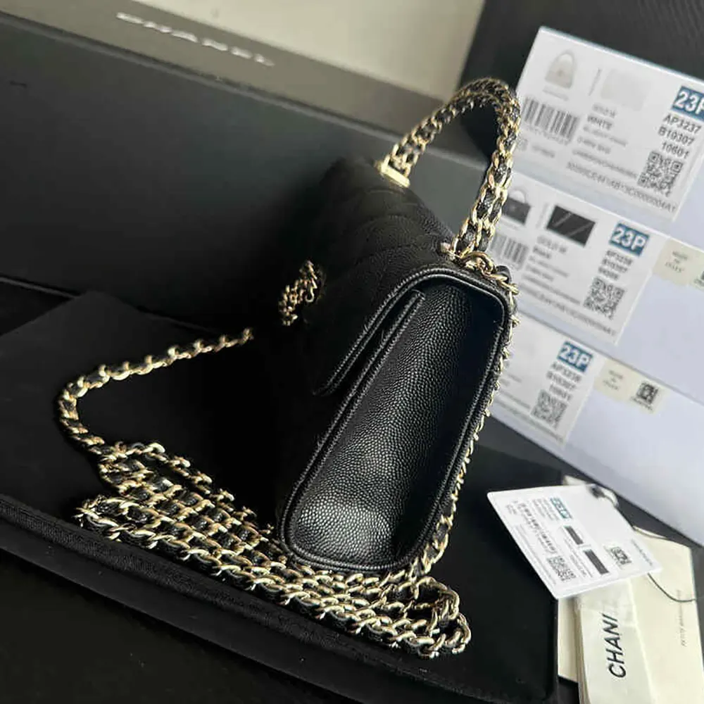 Chanel Women Clutch with Chain Grained Shiny Calfskin Gold Tone Metal-Black