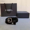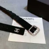Chanel Women Goatskin Silver-Tone Metal & Strass Black Belt AA7319