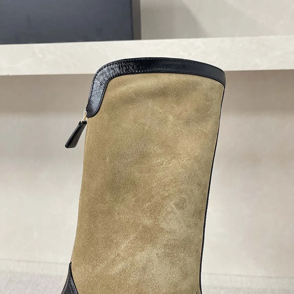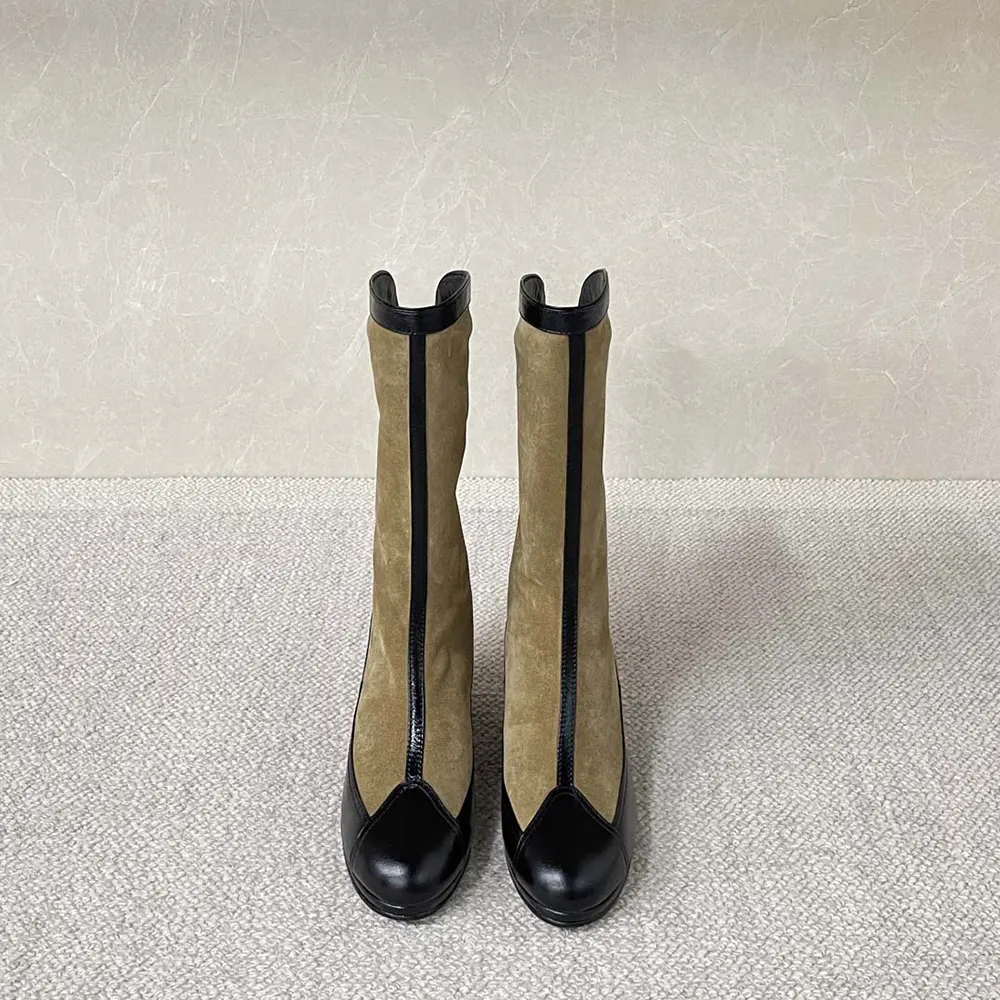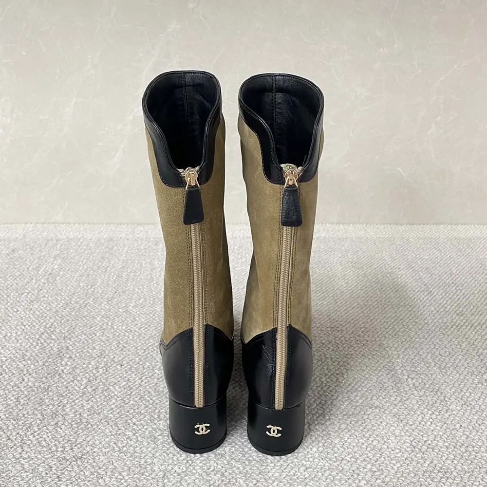 Chanel Women High Boots Suede Calfskin Lambskin-Beige & Black G46591