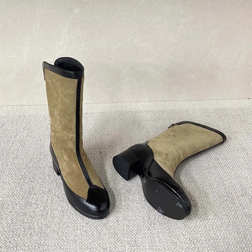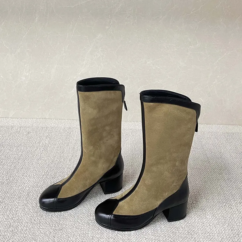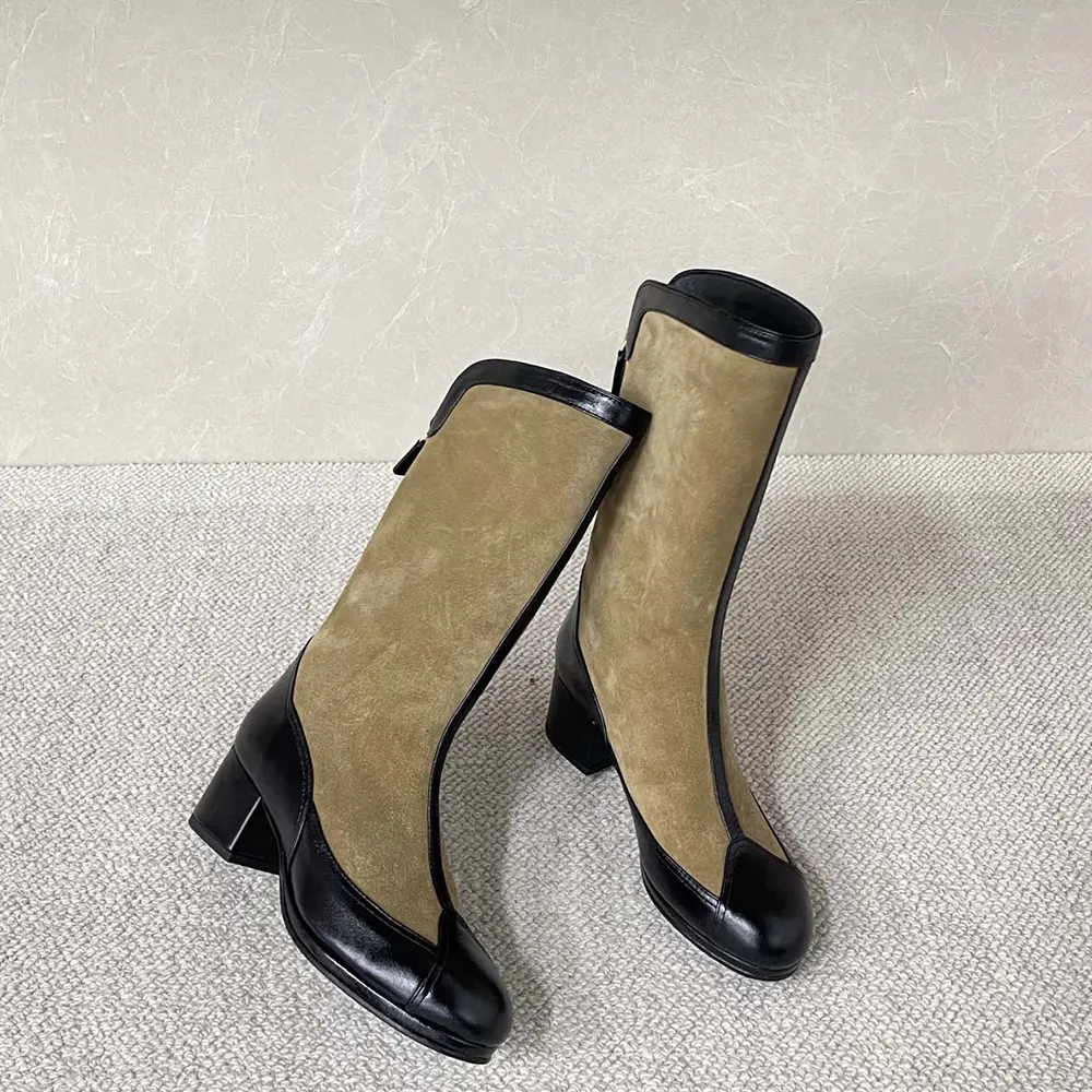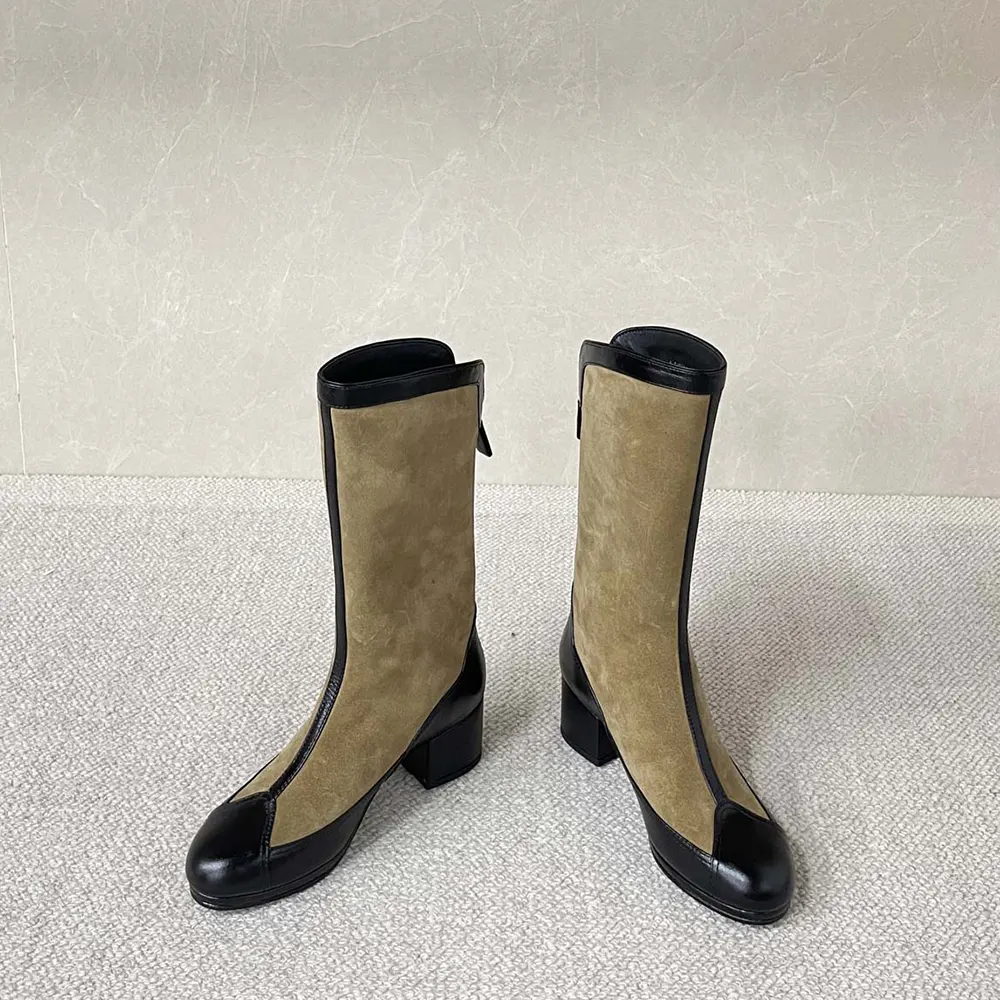 Chanel Women High Boots Suede Calfskin Lambskin-Beige & Black G46591