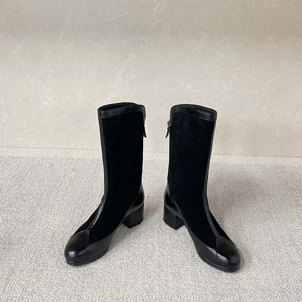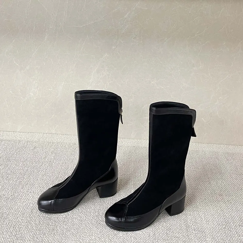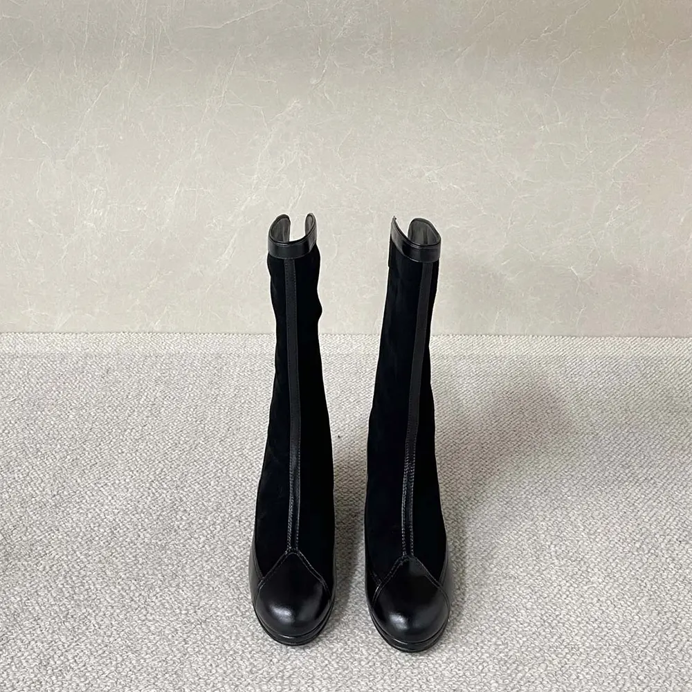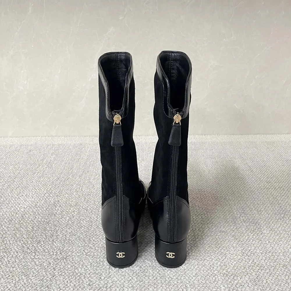 Specification: Chanel Women High Boots Suede Calfskin Lambskin-Black