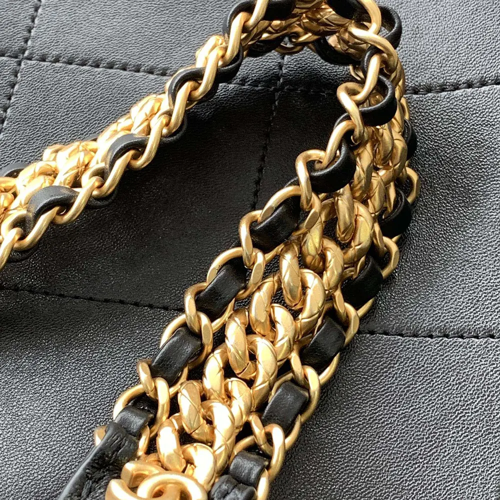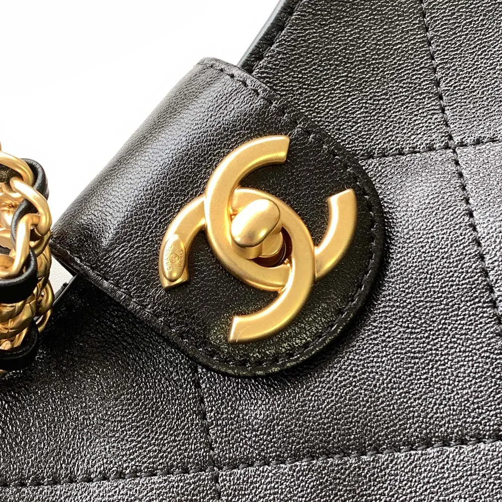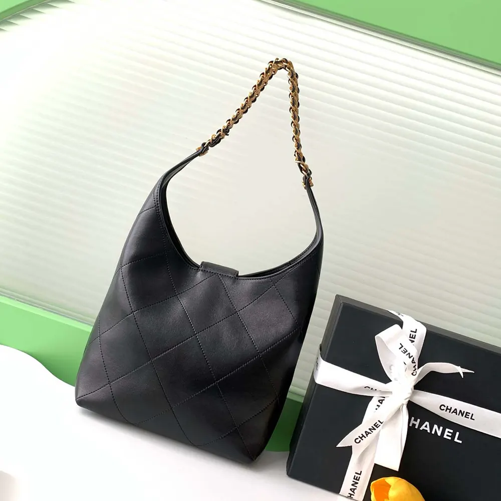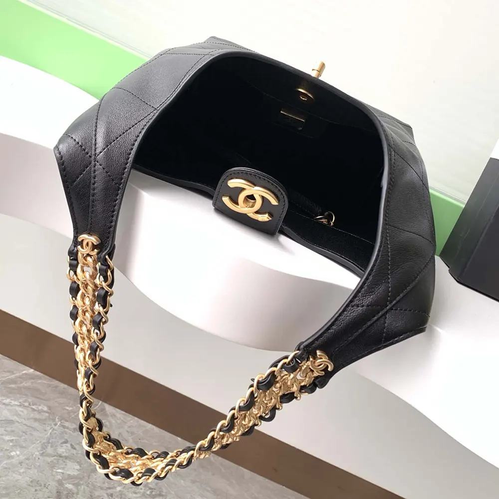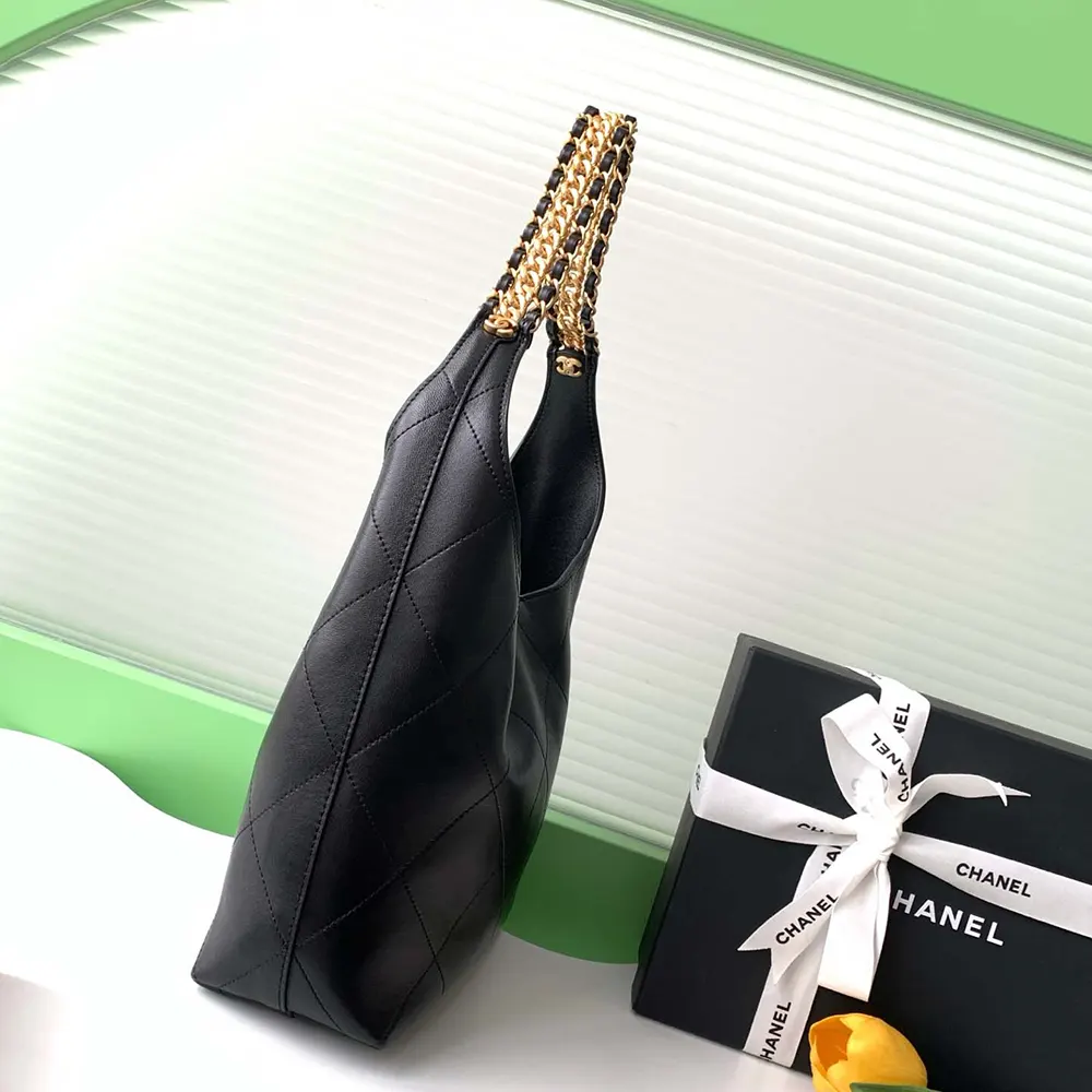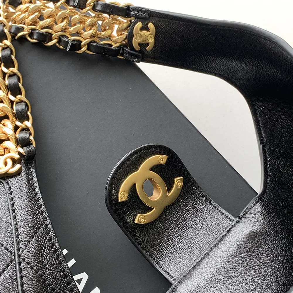 Chanel Women Large Hobo Bag Shiny Lambskin Gold Tone Metal AS5410
