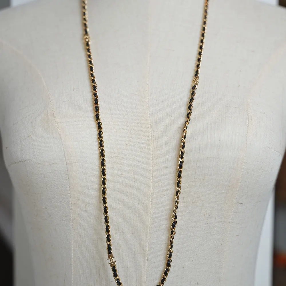 Specification: Chanel Women Long Necklace Metal & Lambskin Golden & Black ABH266