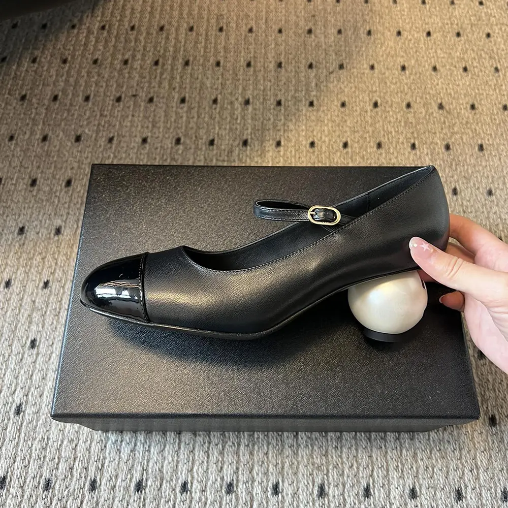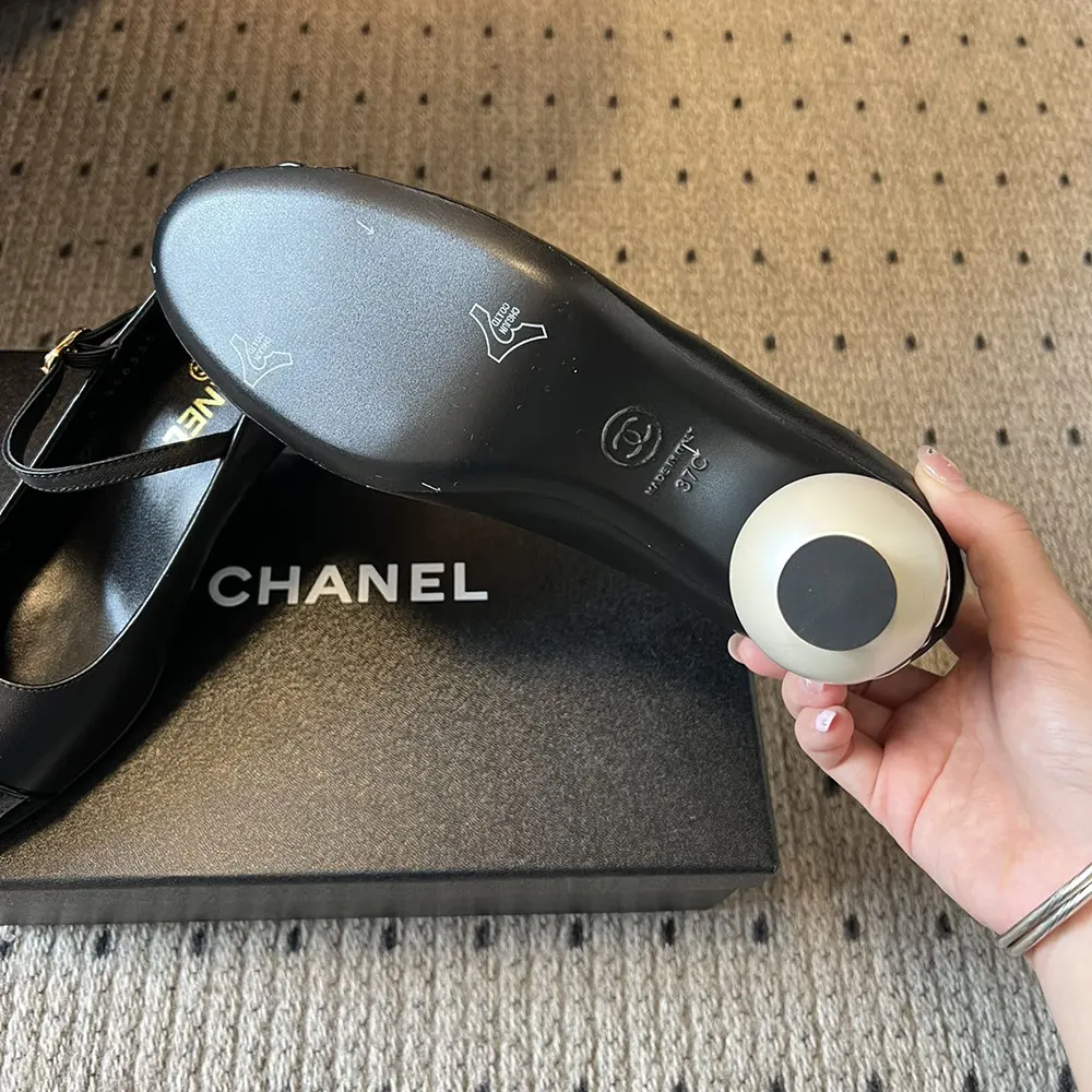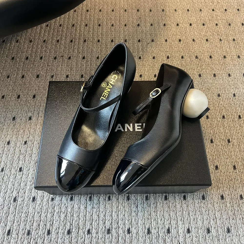 Specification: Chanel Women Mary Janes Lambskin Patent Calfskin & Imitation Pearls-Black
