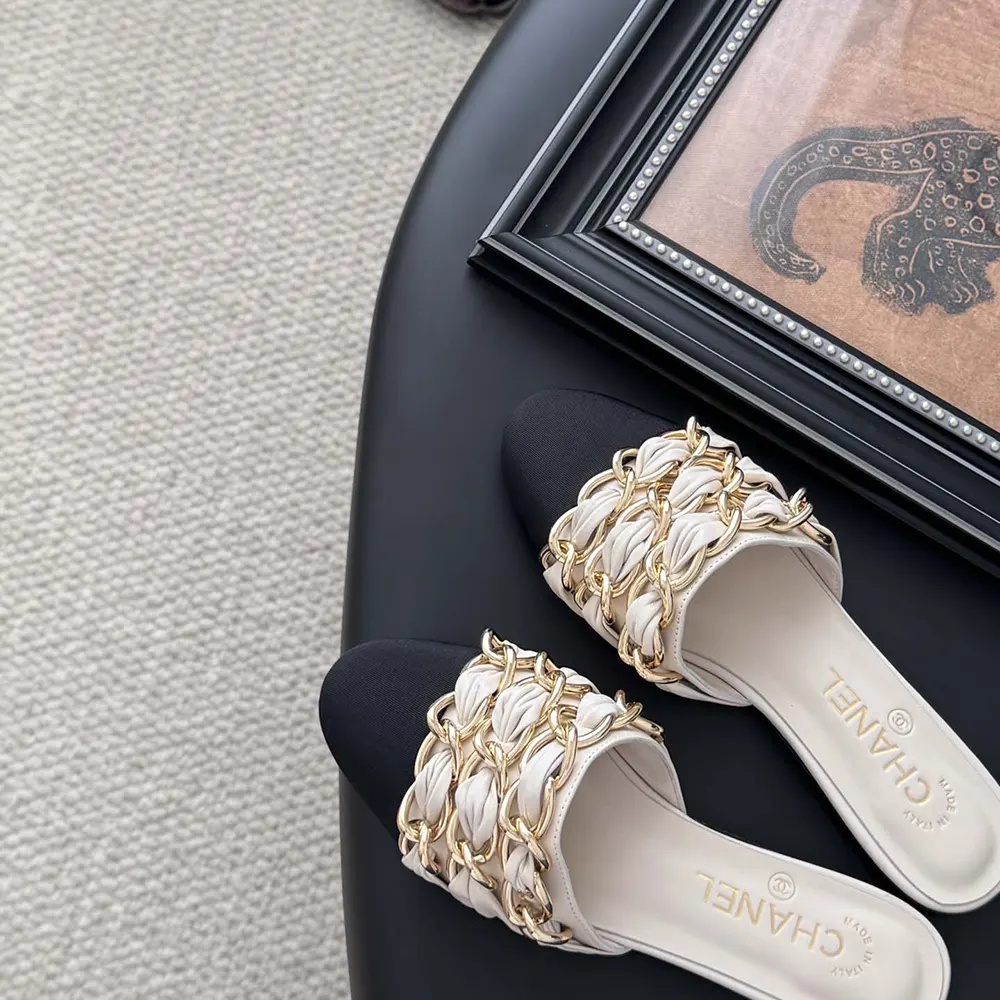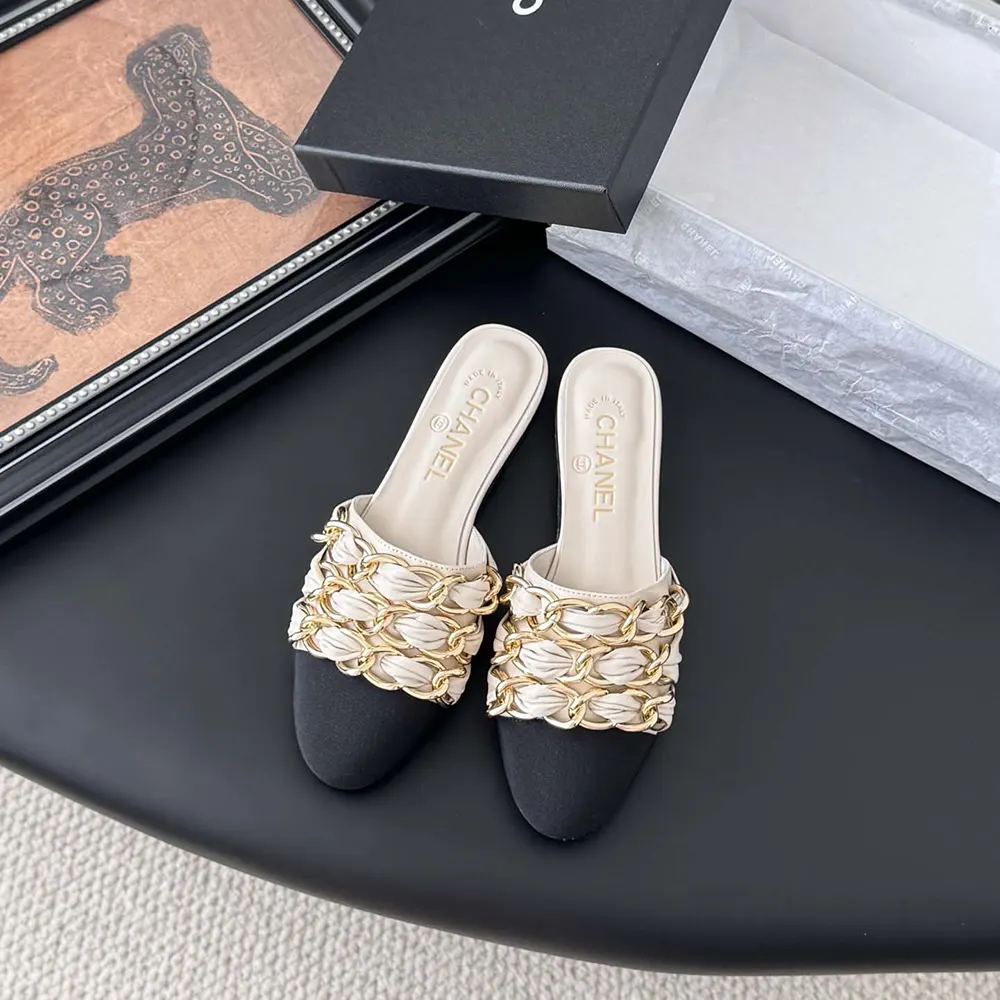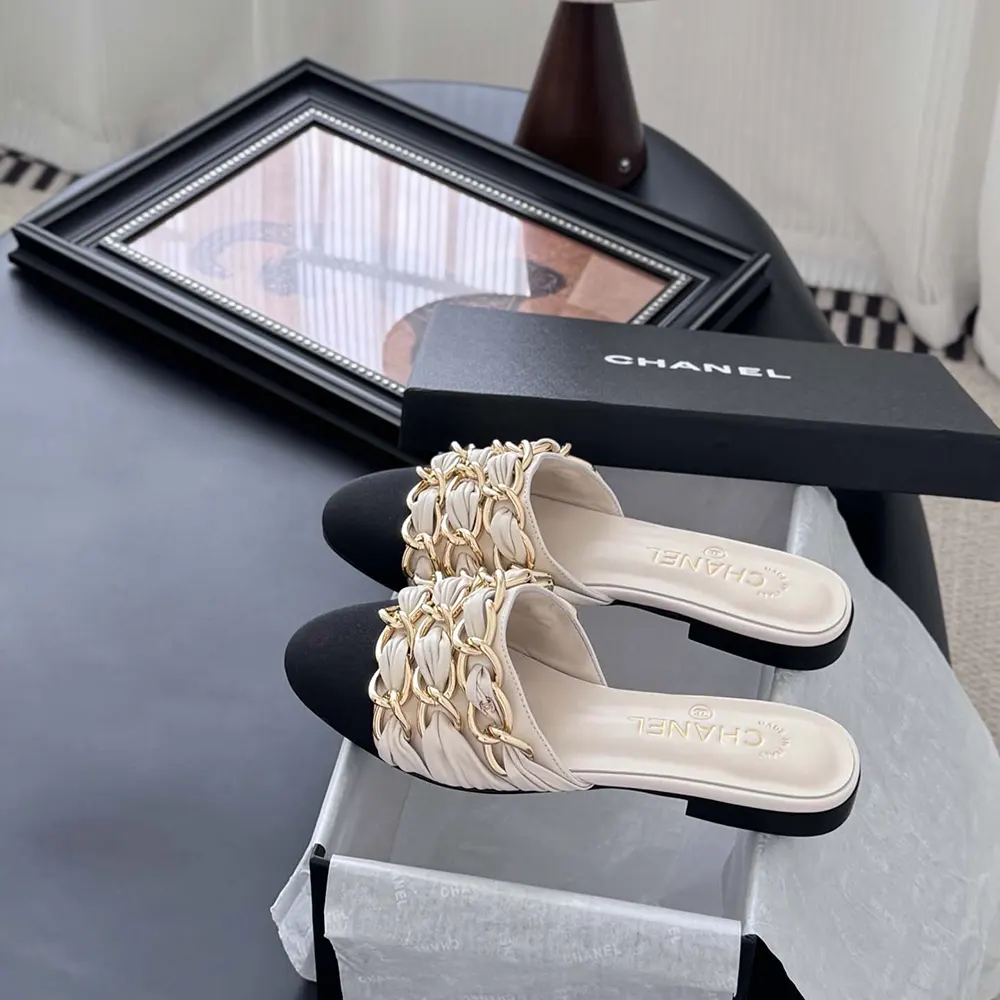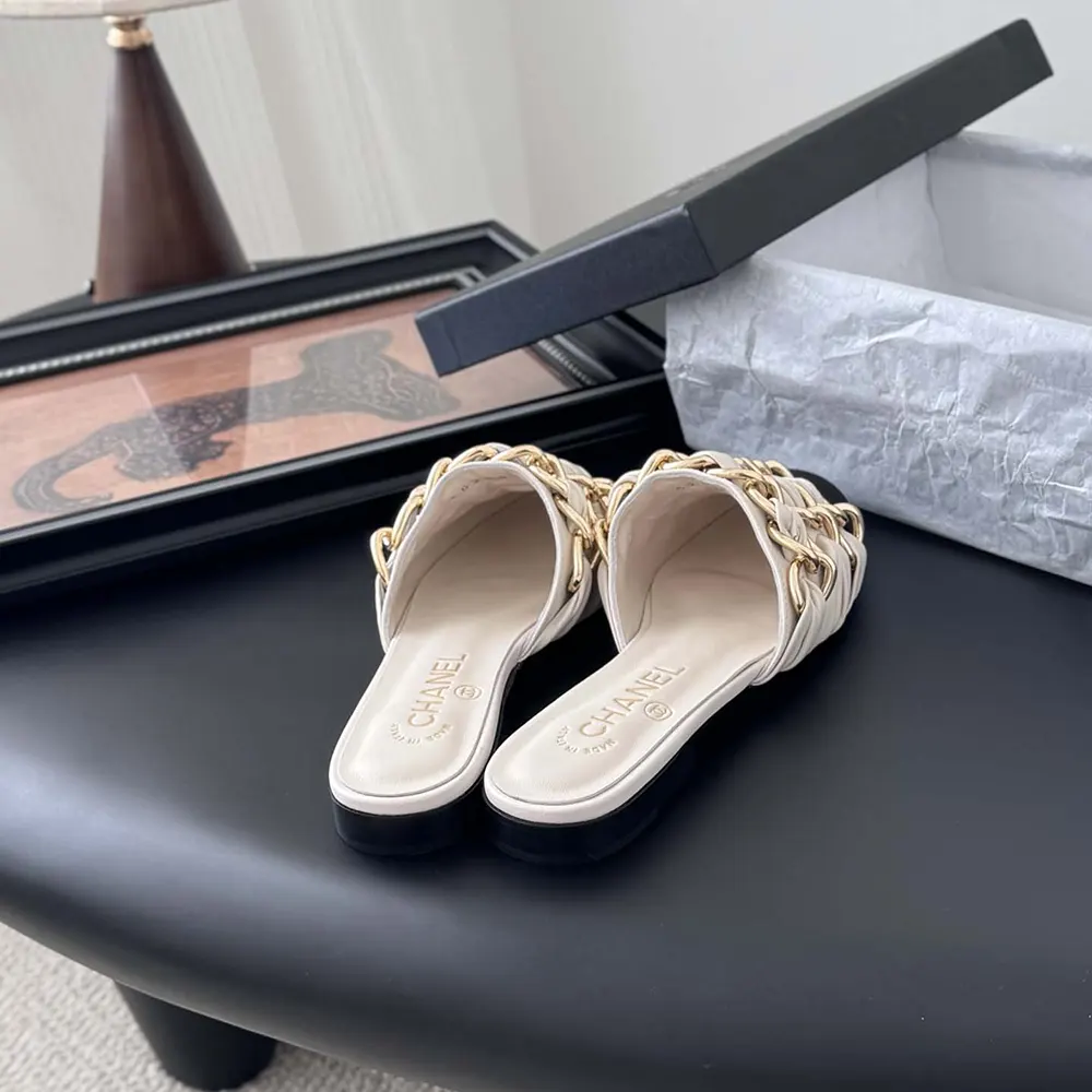 Chanel Women Mules Lambskin Grosgrain-White G46193