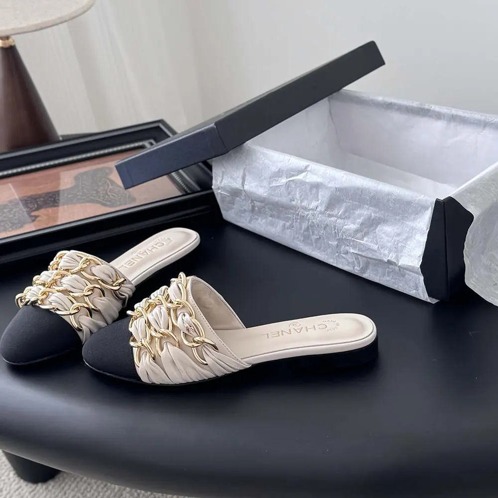 Specification: Chanel Women Mules Lambskin Grosgrain-White G46193