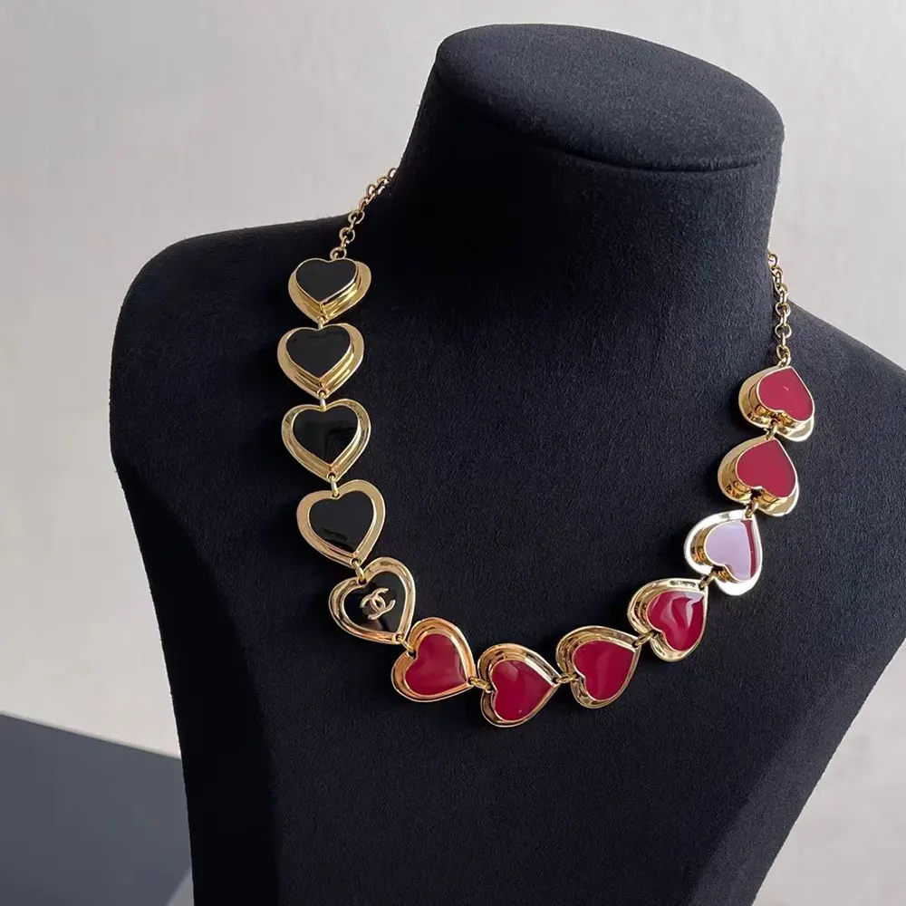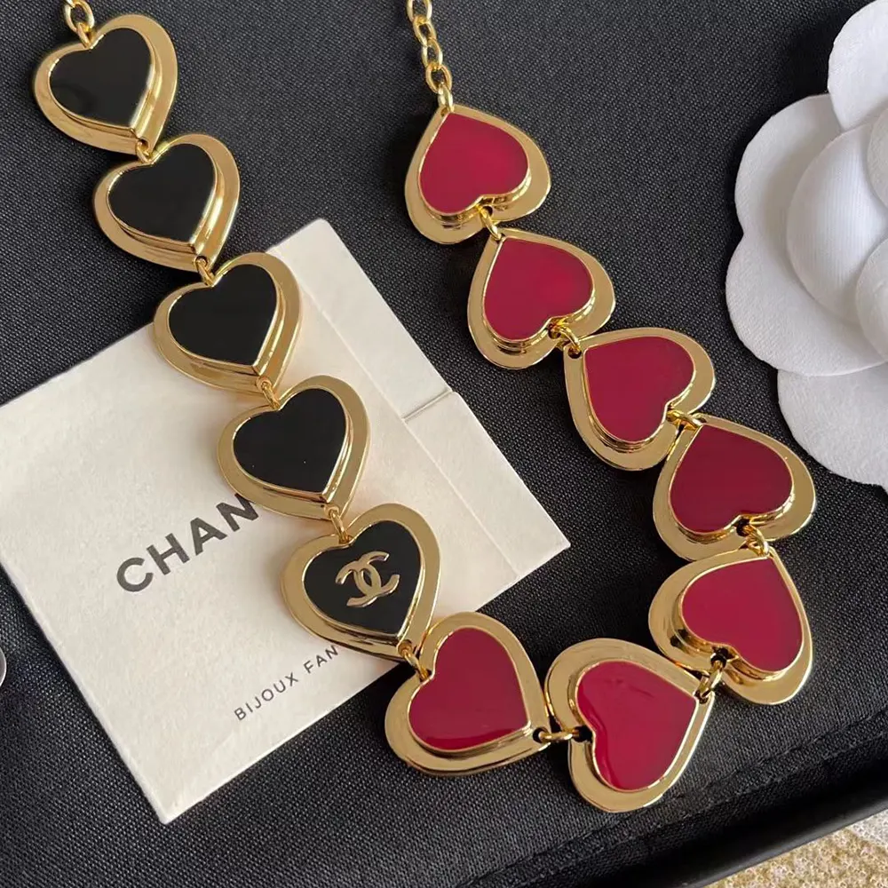 Chanel Women Necklace Metal & Resin Golden Black & Dark Red ABH169