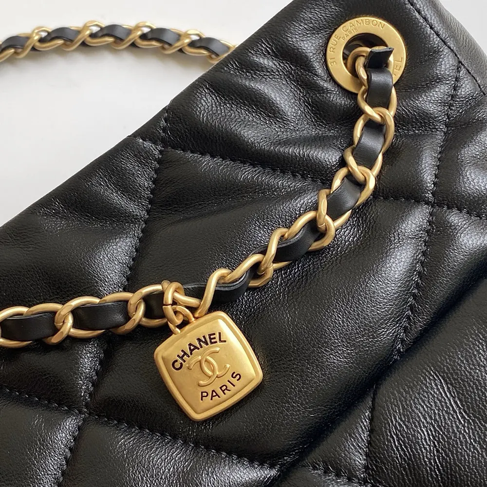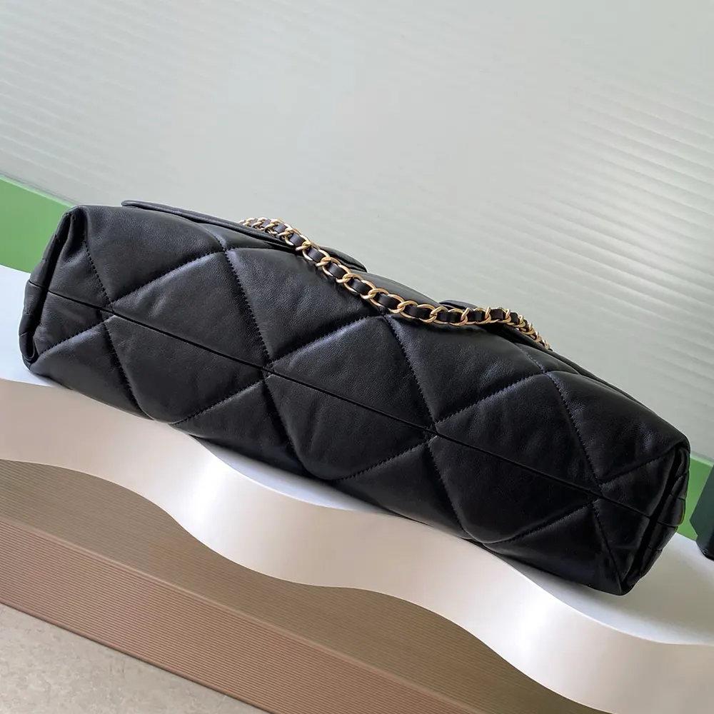 Chanel Women Shopping Bag Shiny Lambskin & Gold-Tone Metal-Black