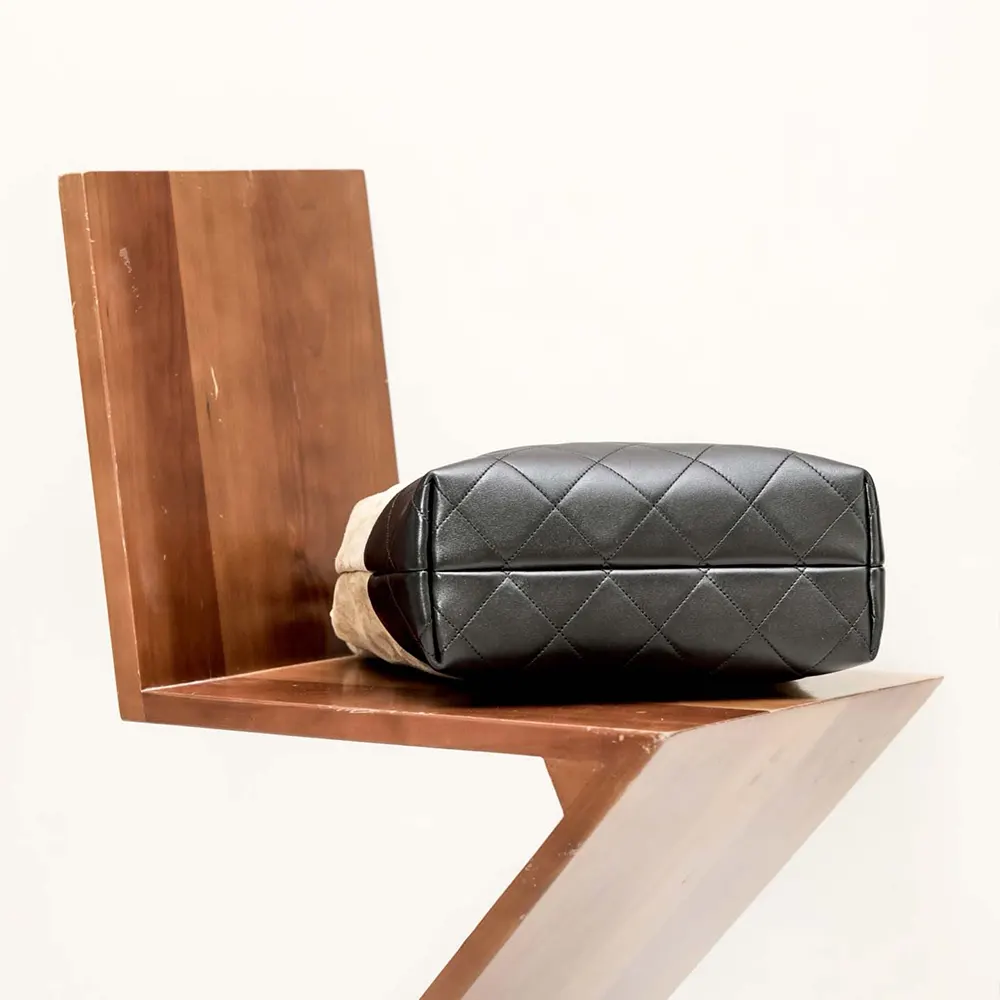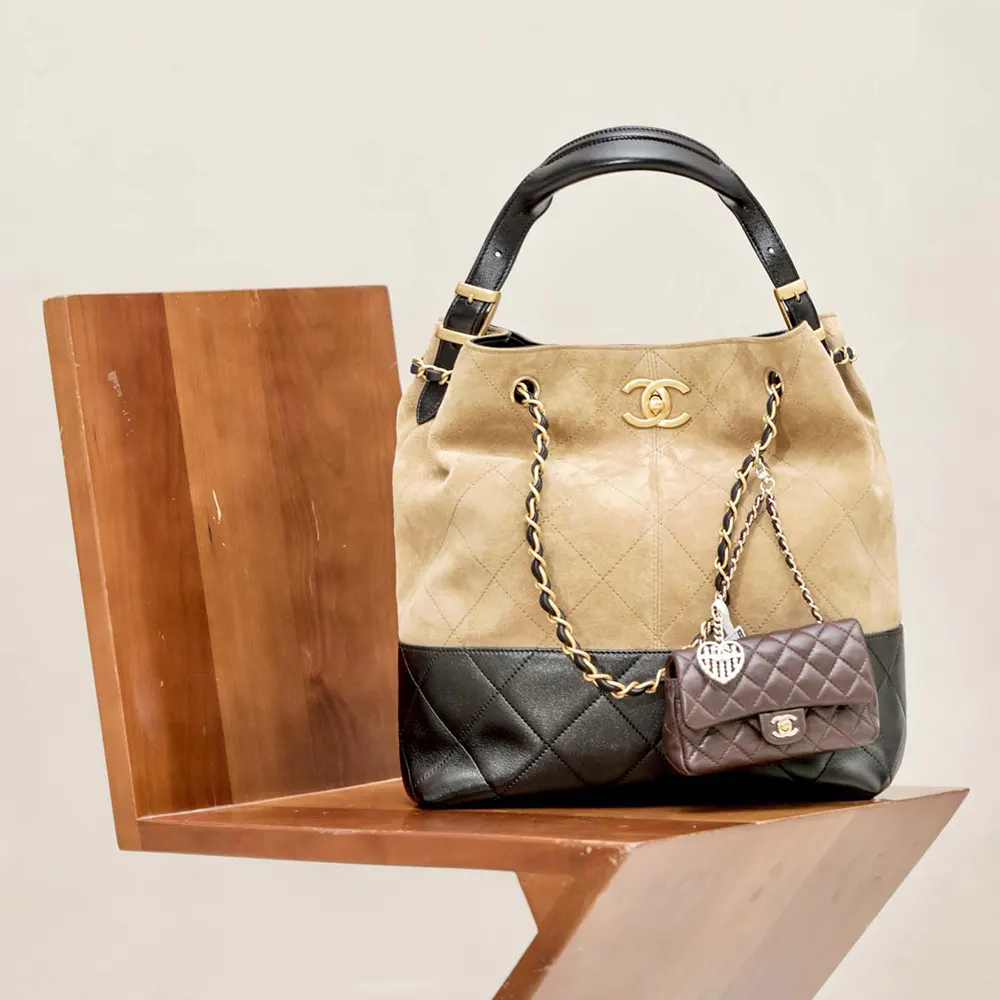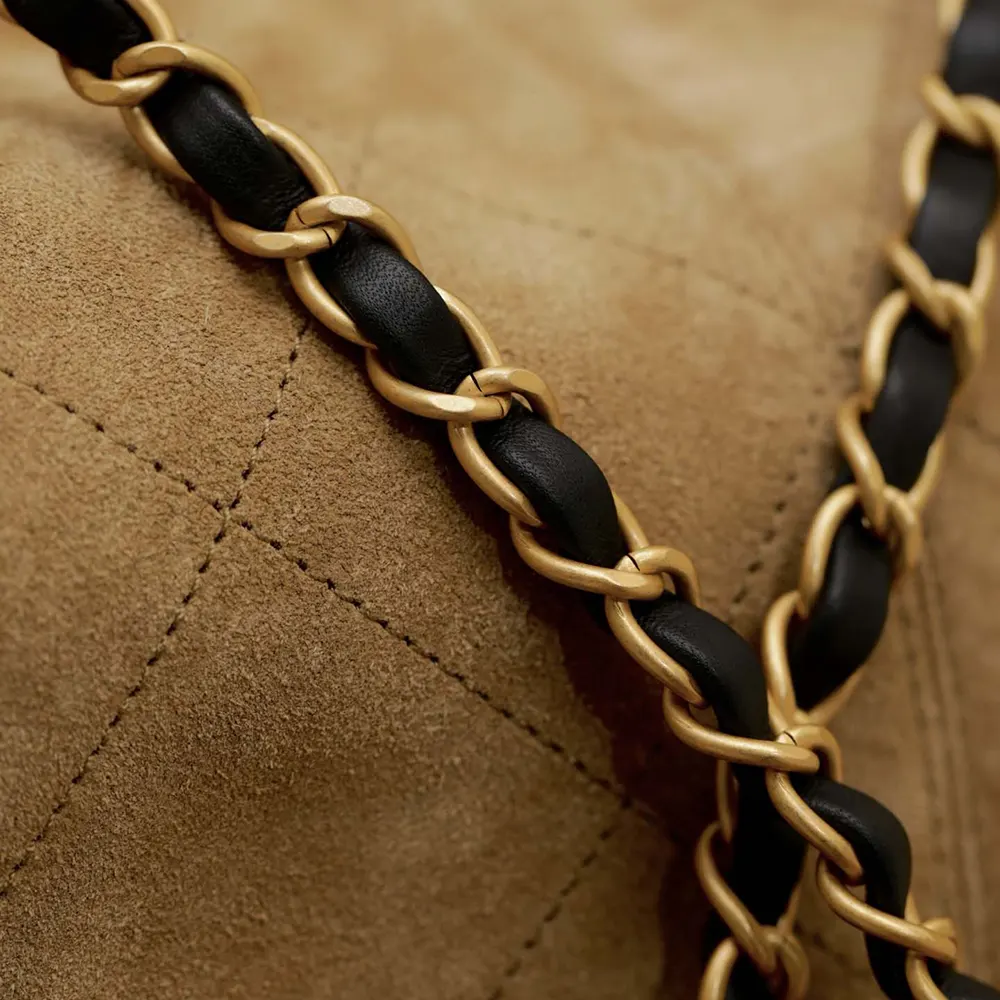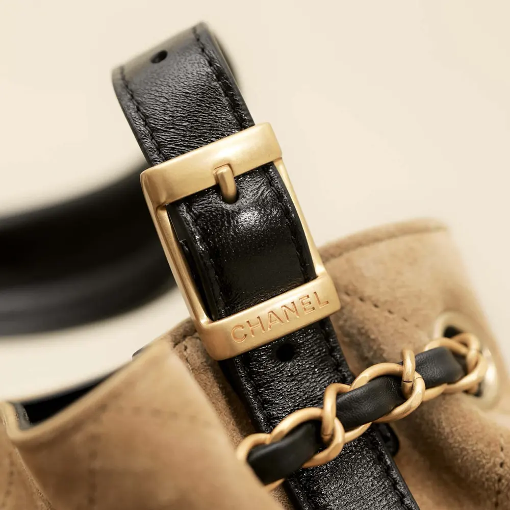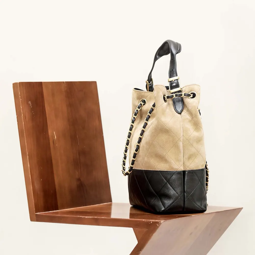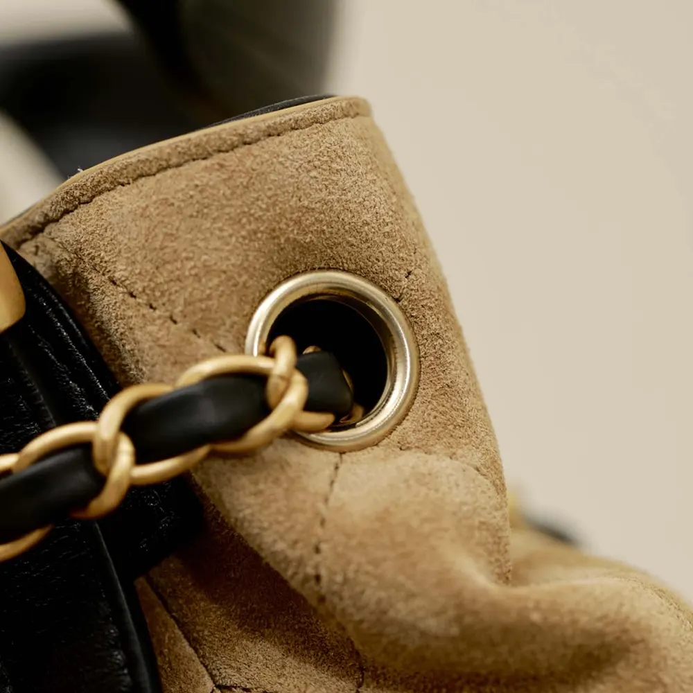 Chanel Women Shopping Bag Suede Calfskin Shiny Lambskin Gold Tone Metal