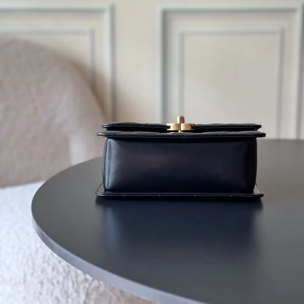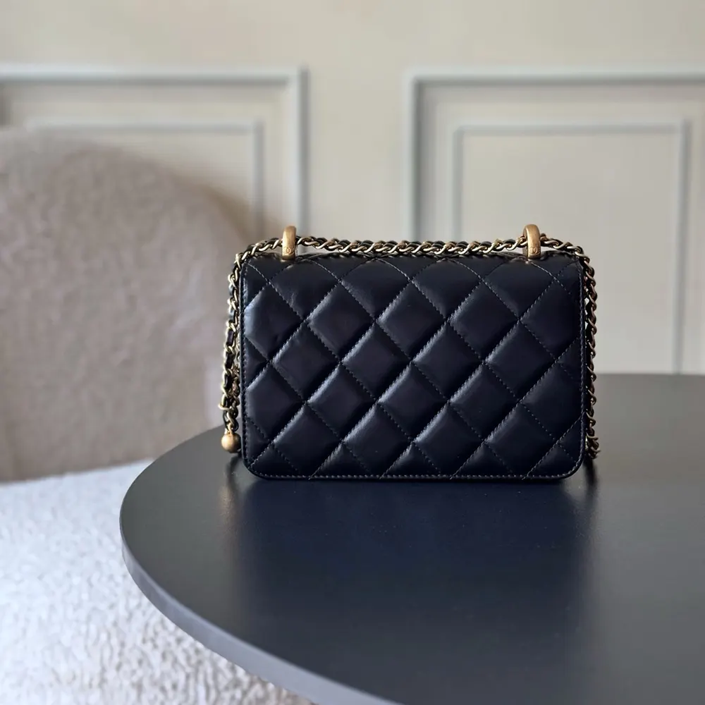 Chanel Women Small Flap Bag Shiny Calfskin & Gold-Tone Metal-Black