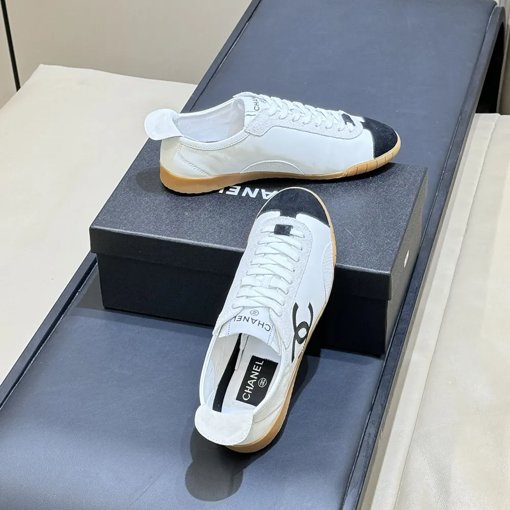 Chanel Women Sneakers Calfskin & Embossed Suede Calfskin White & Black G47125