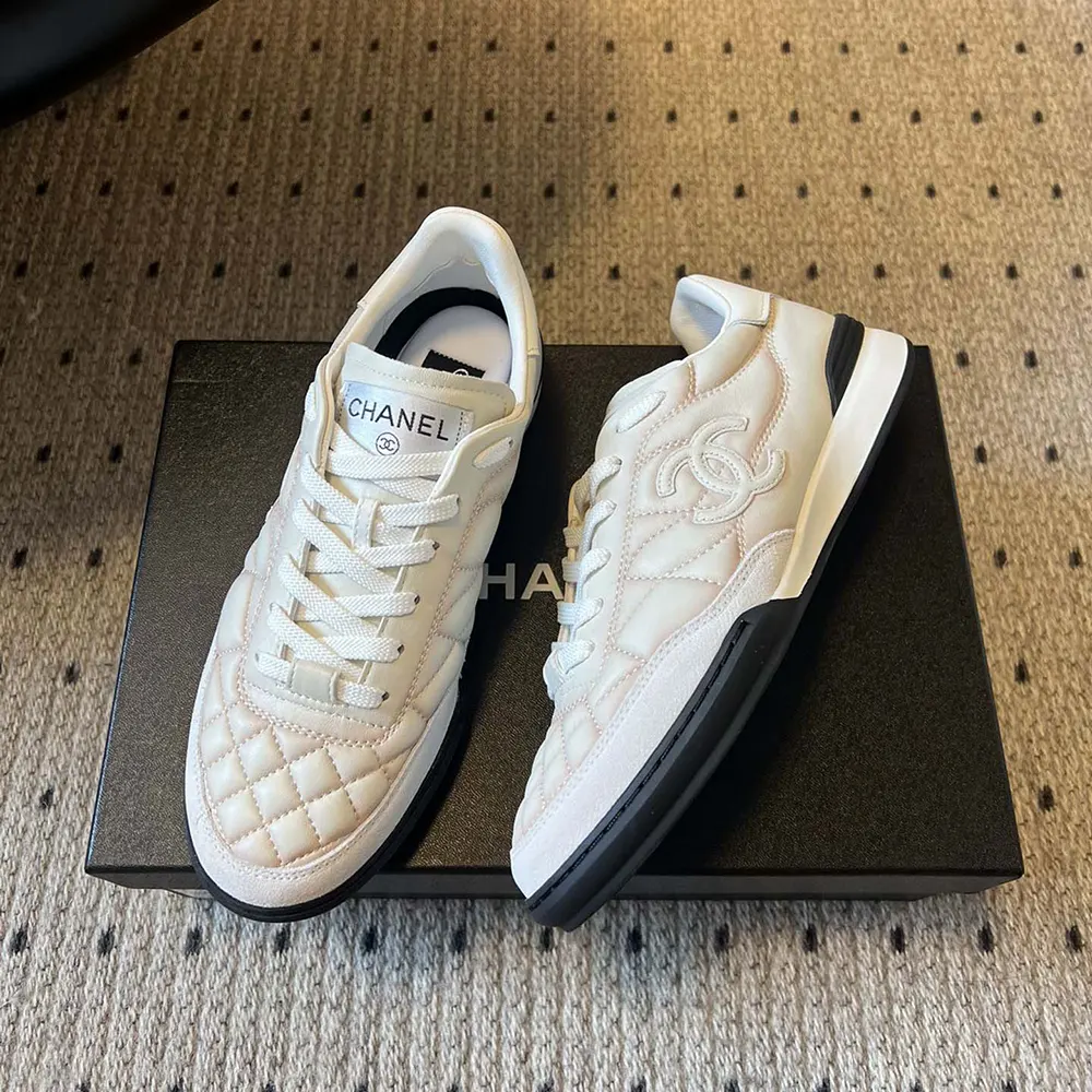 Chanel Women Sneakers Calfskin-White & Light Gray G45839