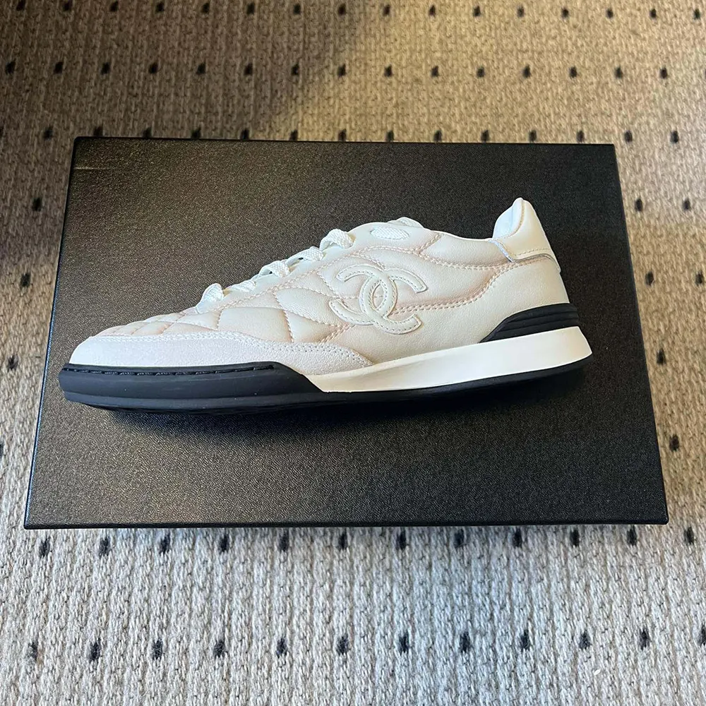 Specification: Chanel Women Sneakers Calfskin-White & Light Gray G45839