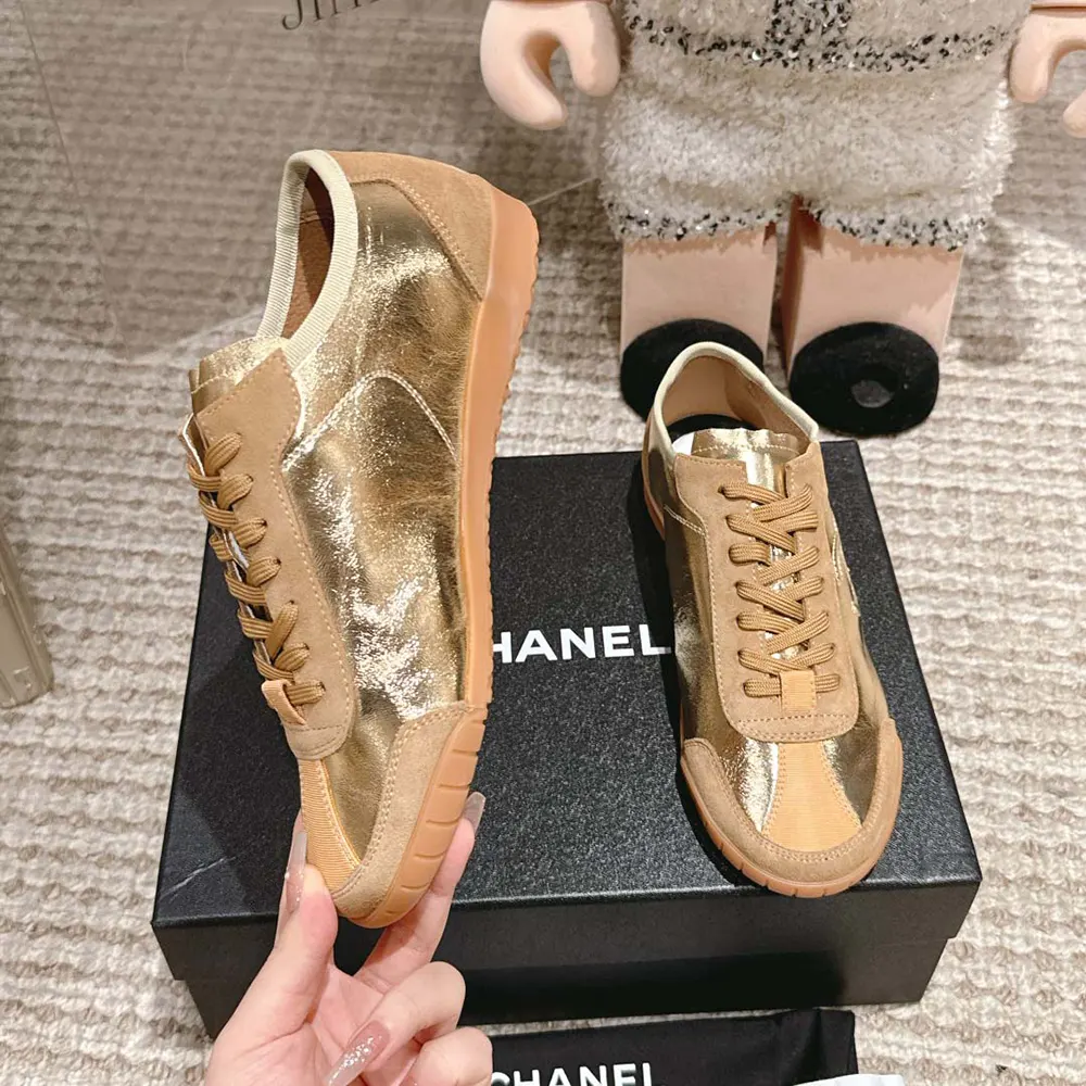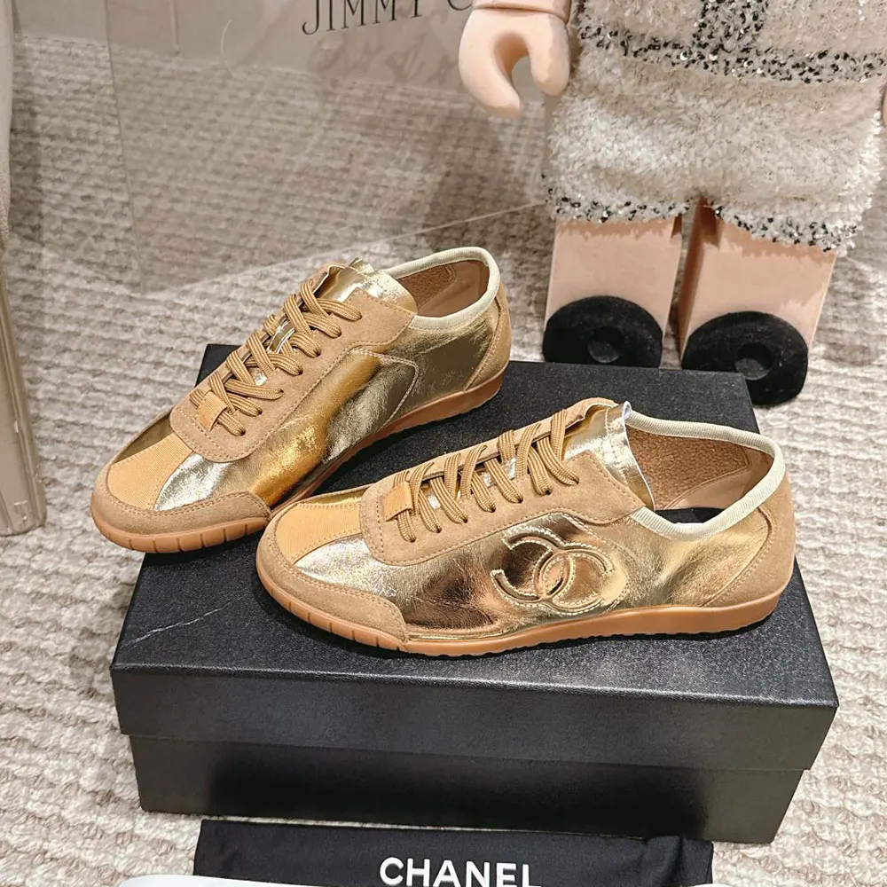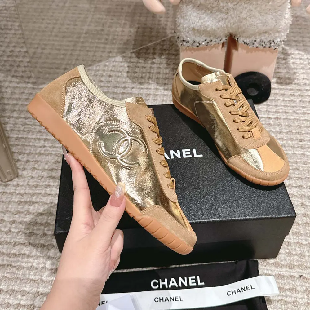 Chanel Women Sneakers Crumpled Laminated Calfskin Suede Calfskin G46614