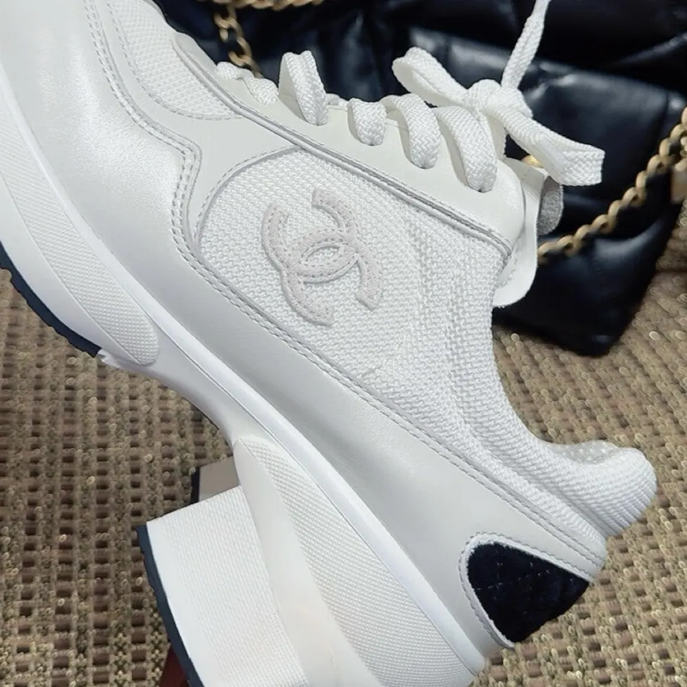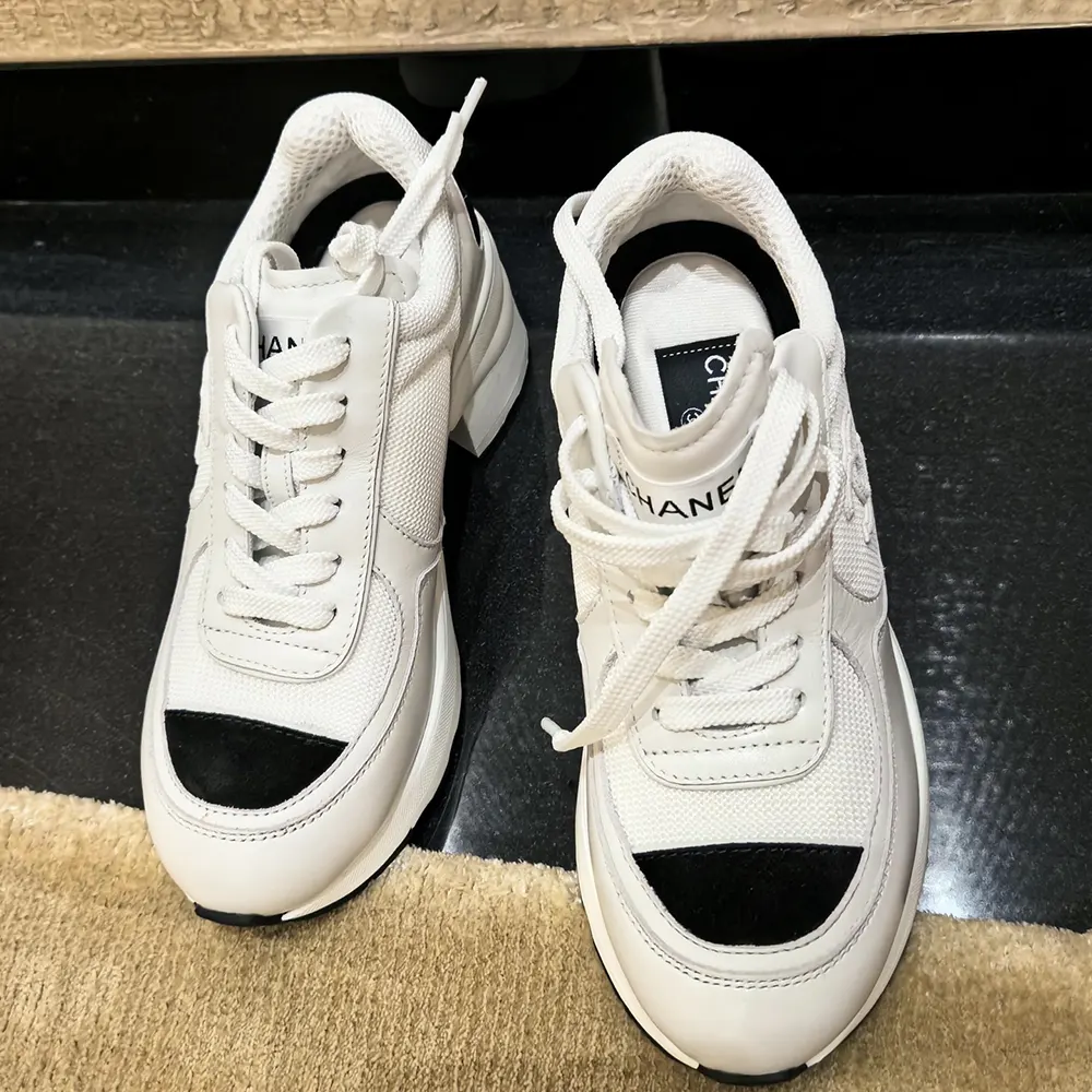 Specification: Chanel Women Sneakers Mixed Fibers Shiny Calfskin & Suede Calfskin-White