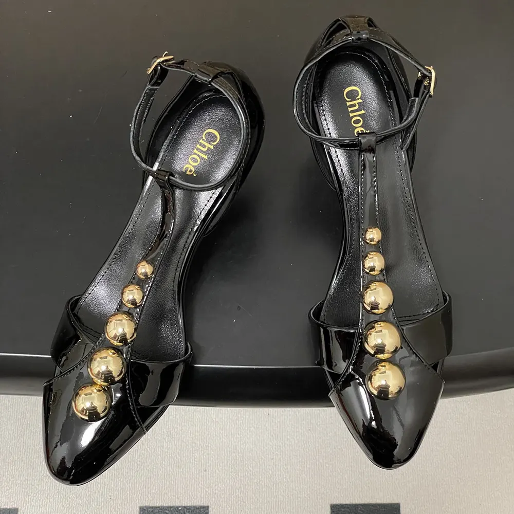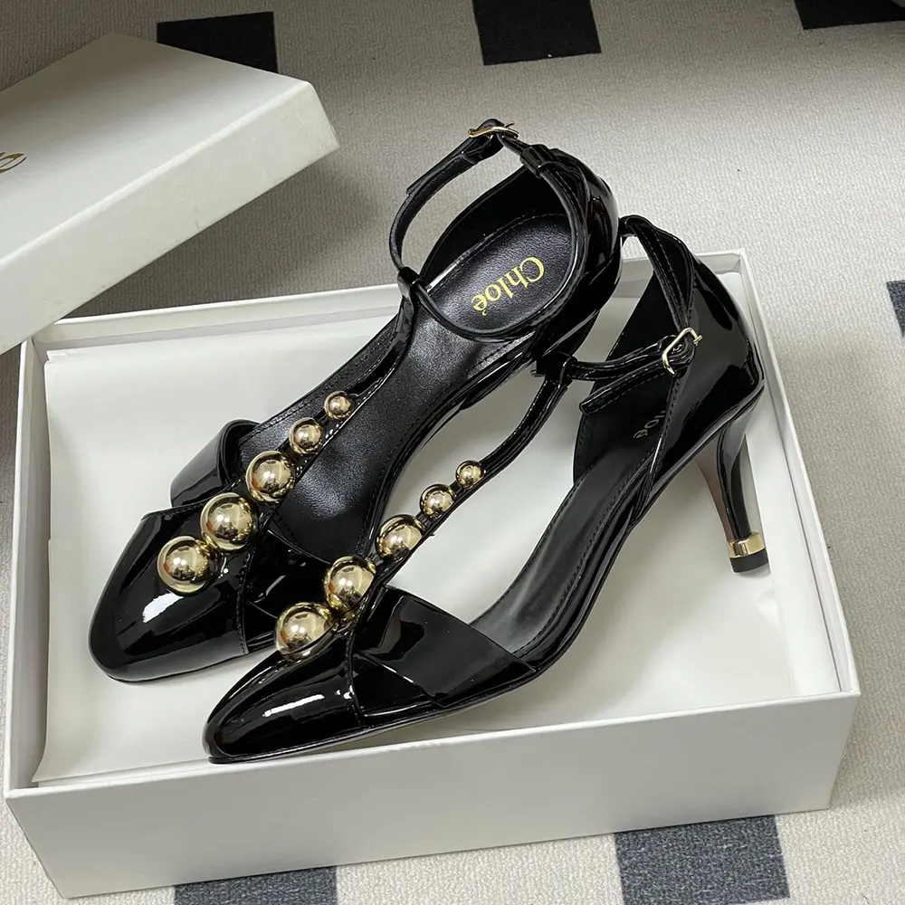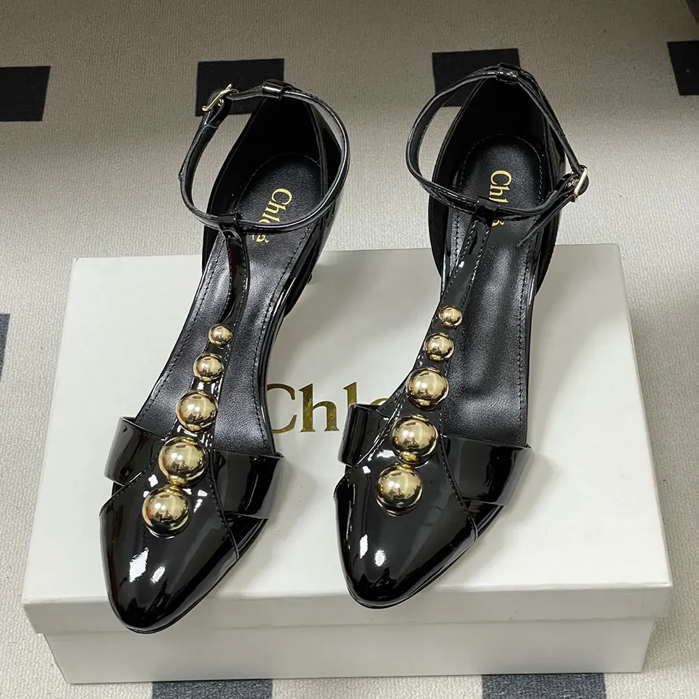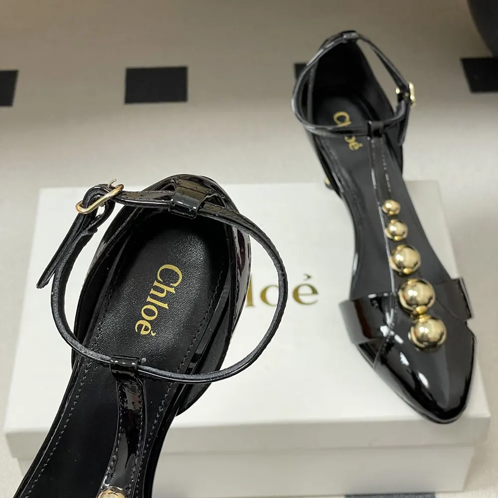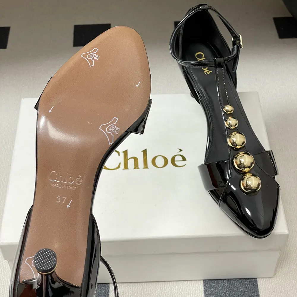 • Chloé-engraved gold-tone hardware signs the heel and adjustable ankle strap.