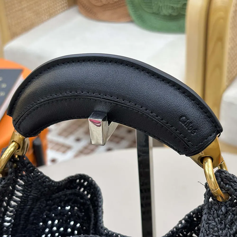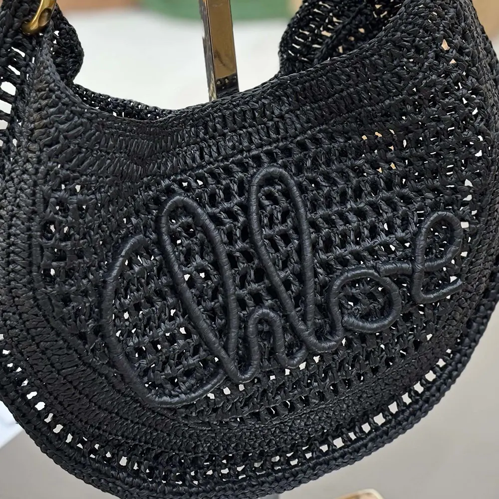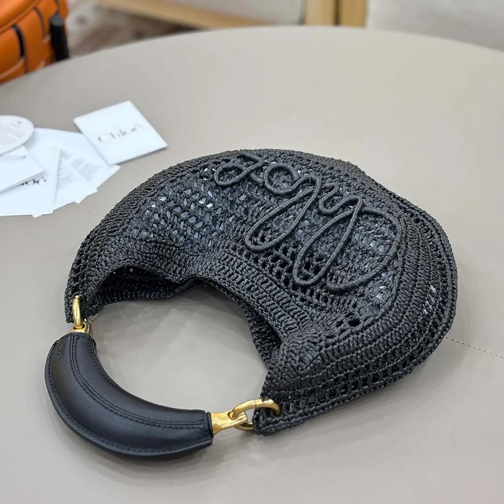 Chloe Women Summer Banana Hobo Bag In Raffia-Black