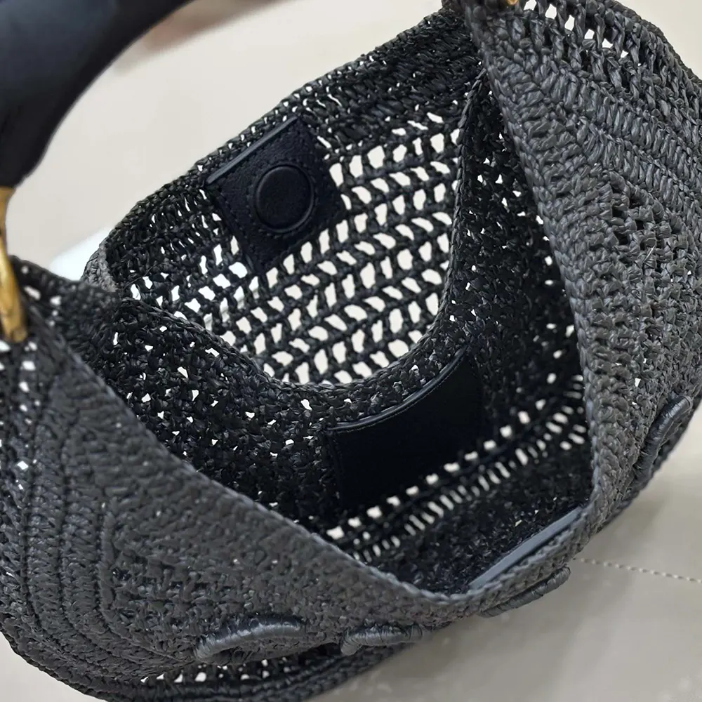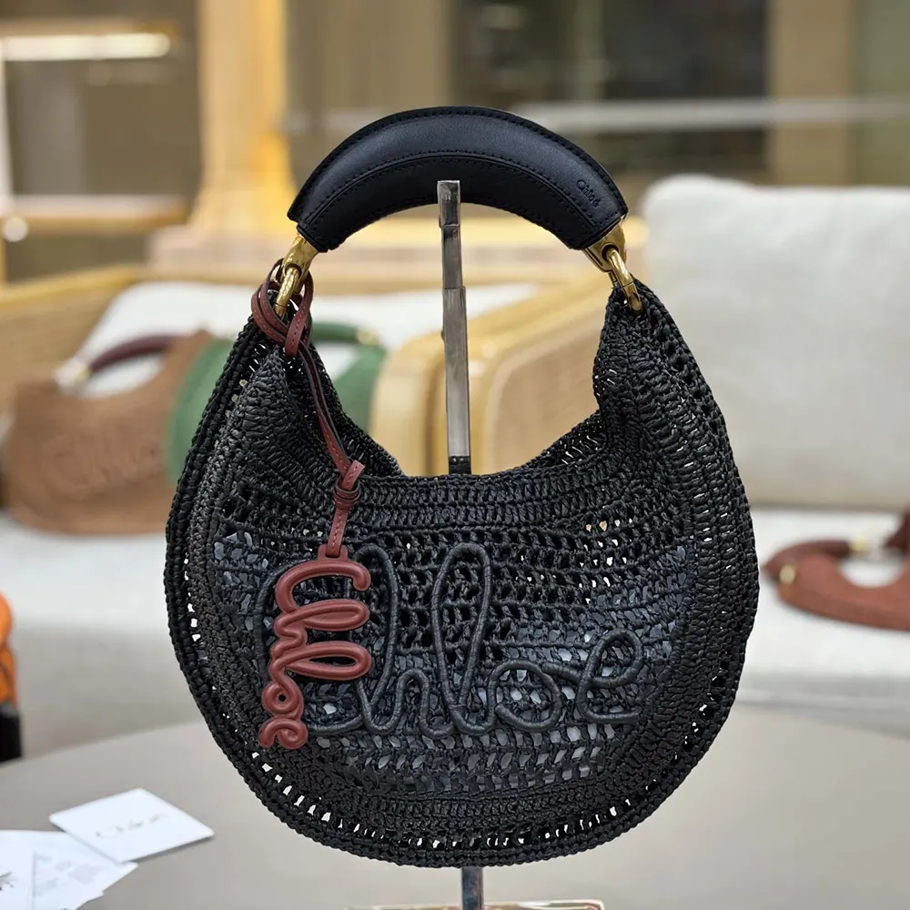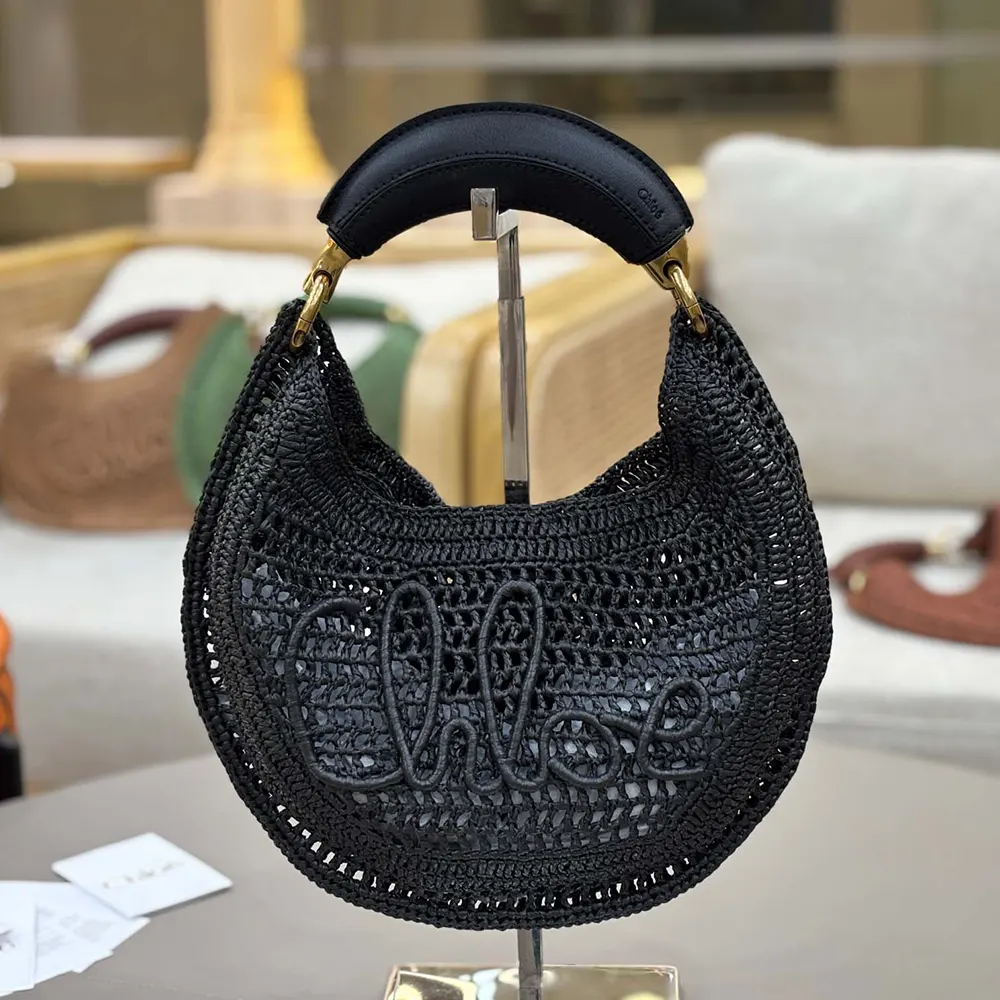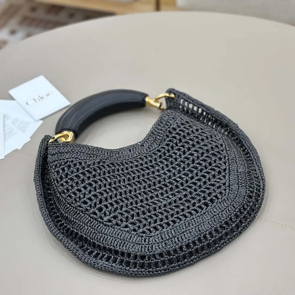 Chloe Women Summer Banana Hobo Bag In Raffia-Black