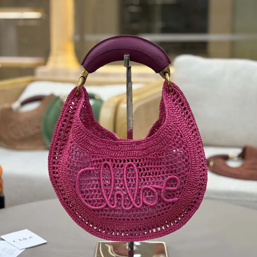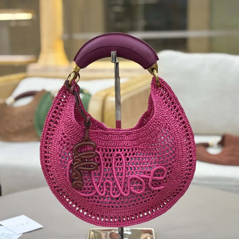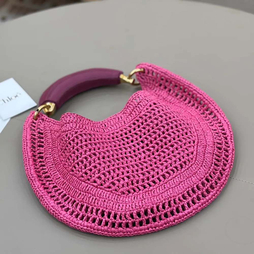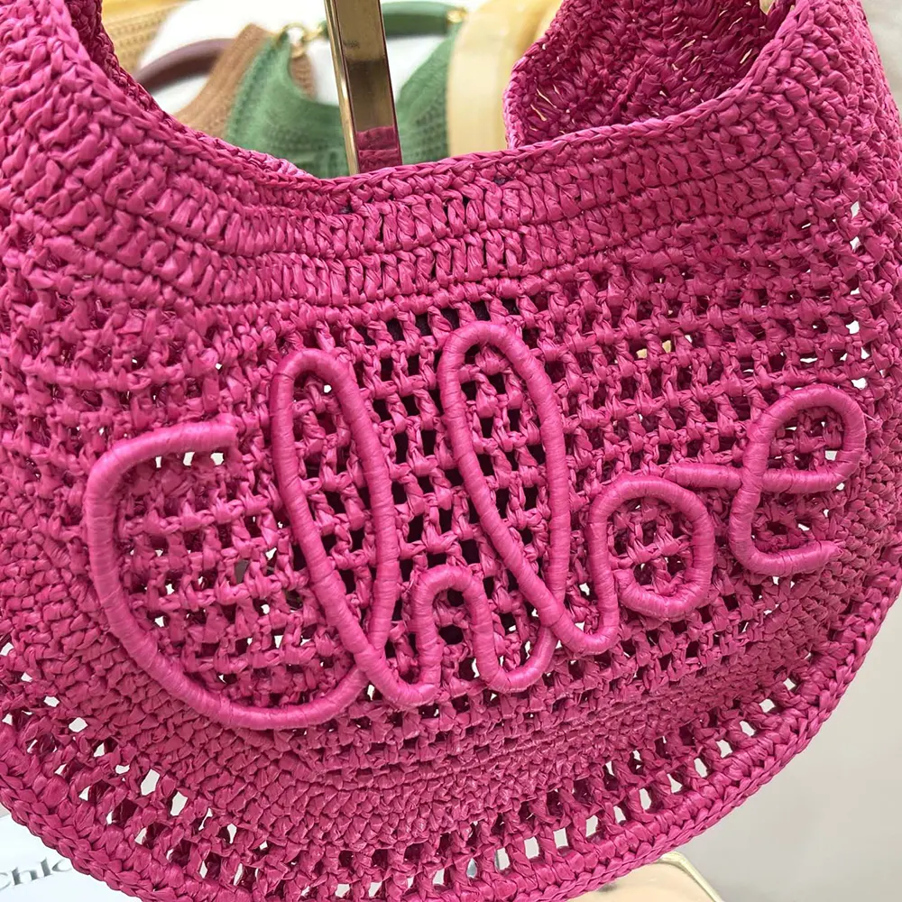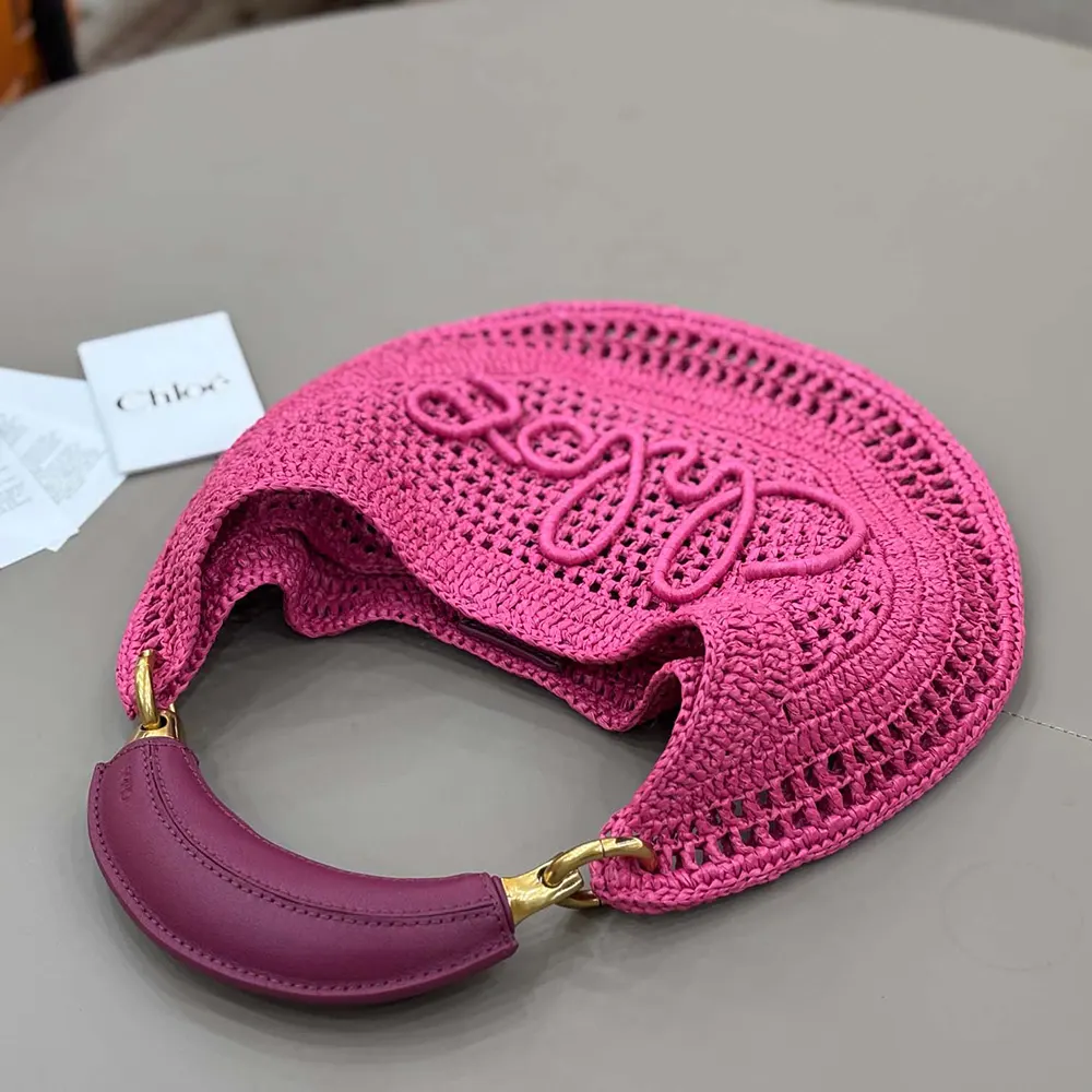 Chloe Women Summer Banana Hobo Bag In Raffia-Rose