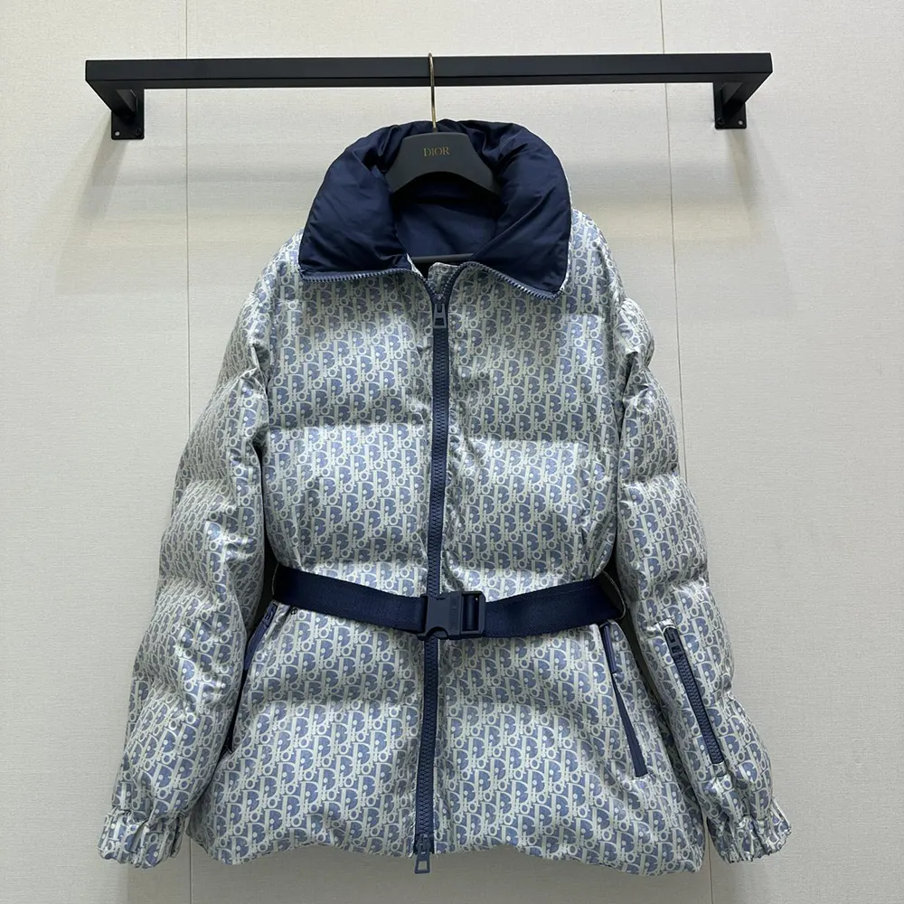 Specification: Dior Men DiorAlps Belted Puffer Jacket Blue and White Dior Oblique Quilted Technical Taffeta