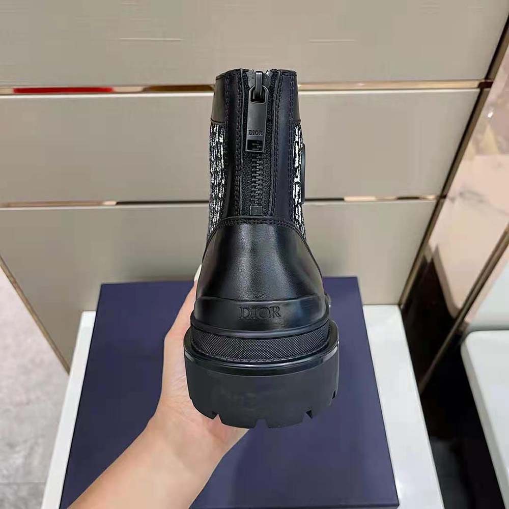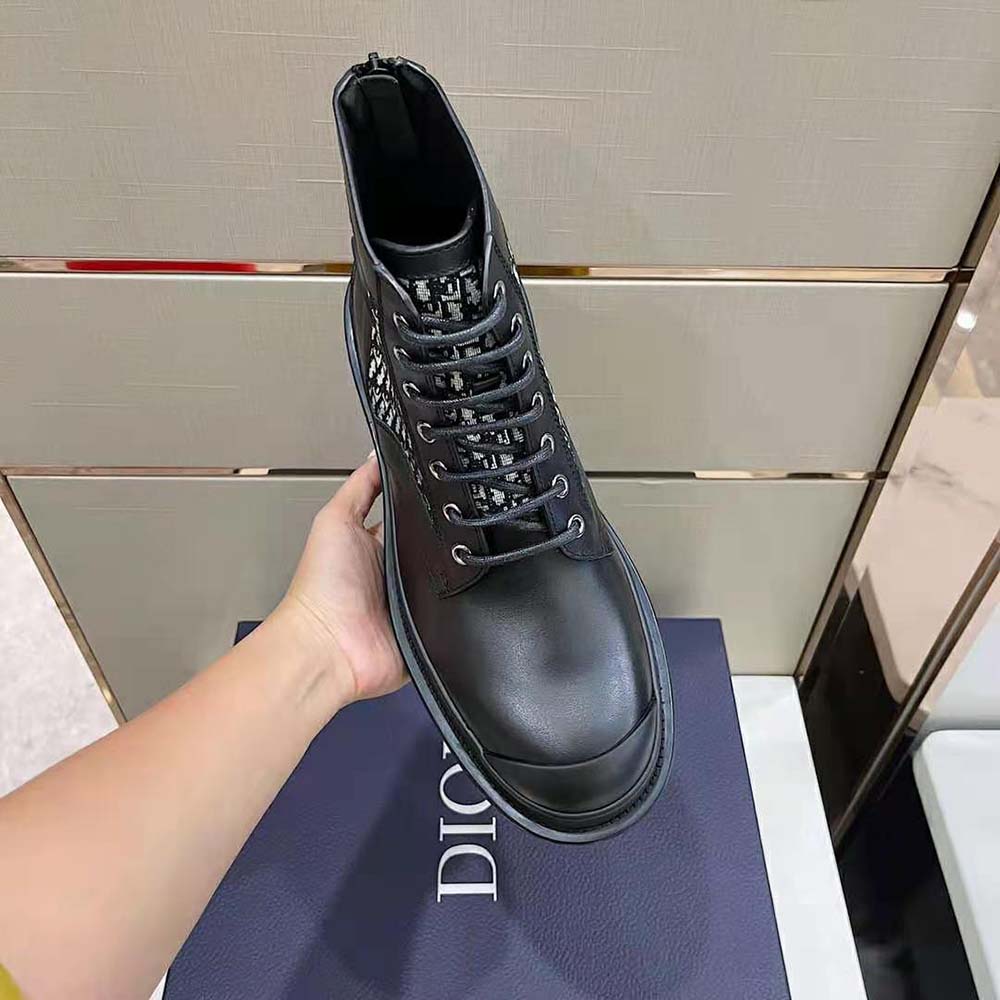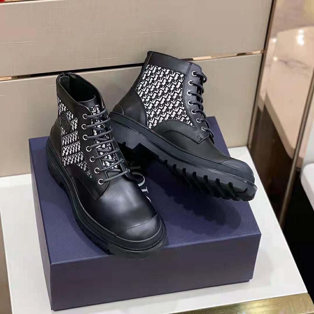Specification: Dior Men Explorer Ankle Boot Black Smooth Calfskin and Beige and Black Dior Oblique Jacquard