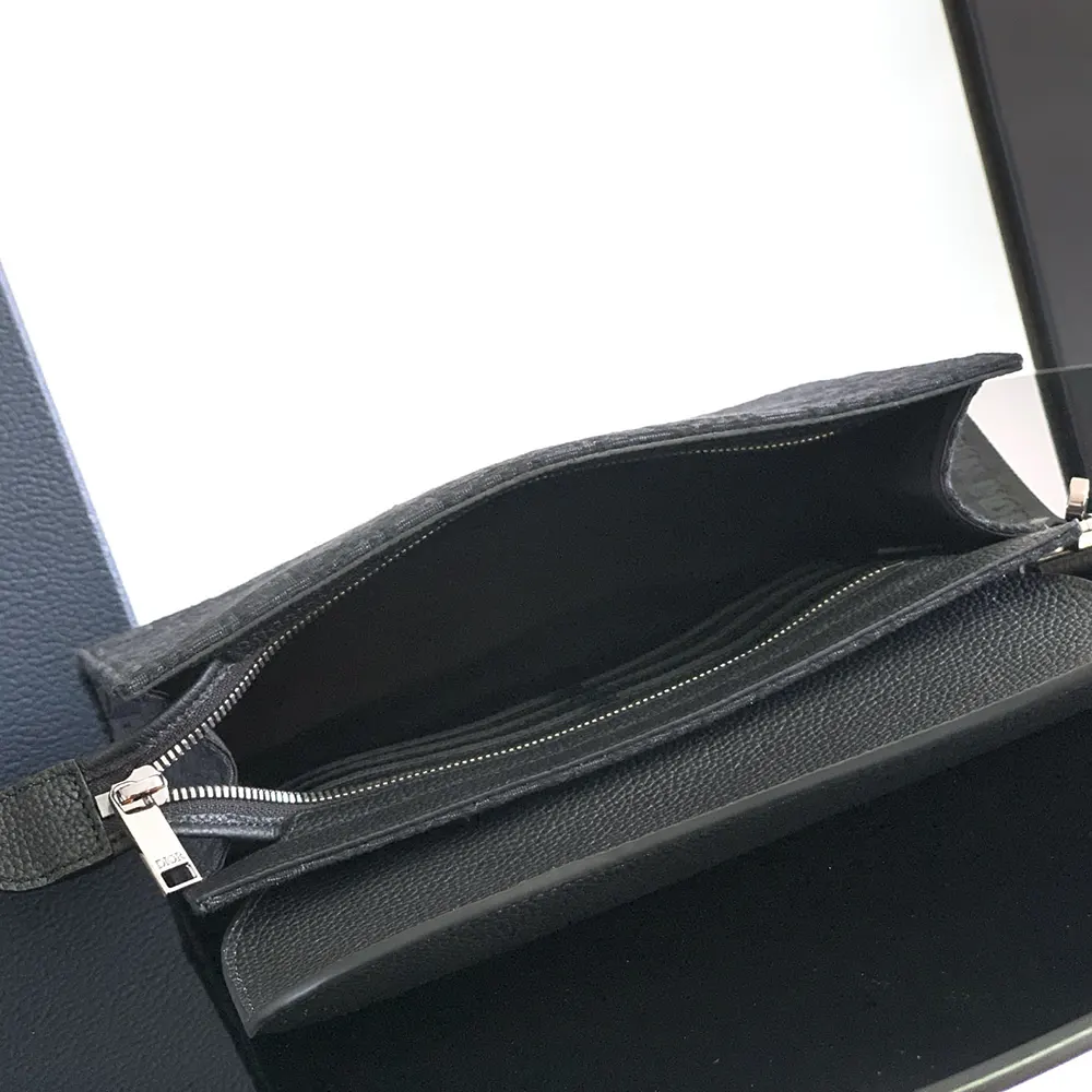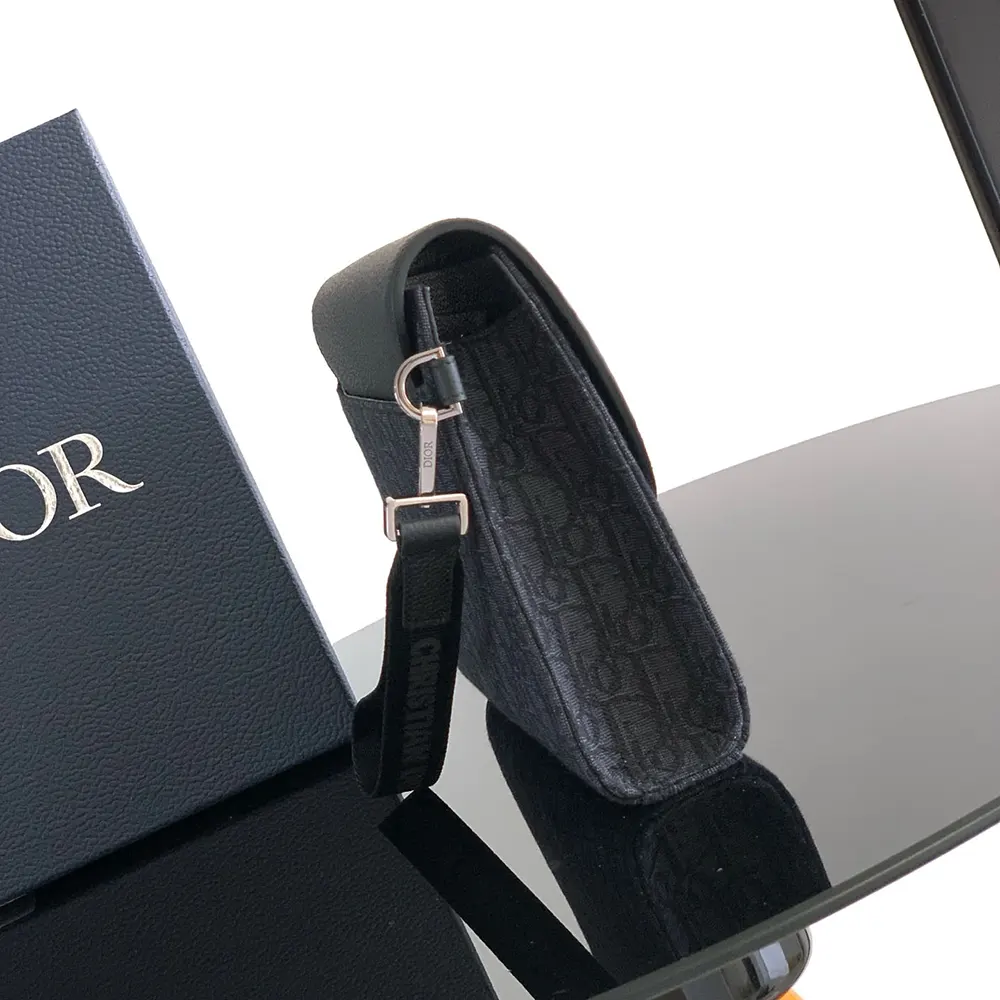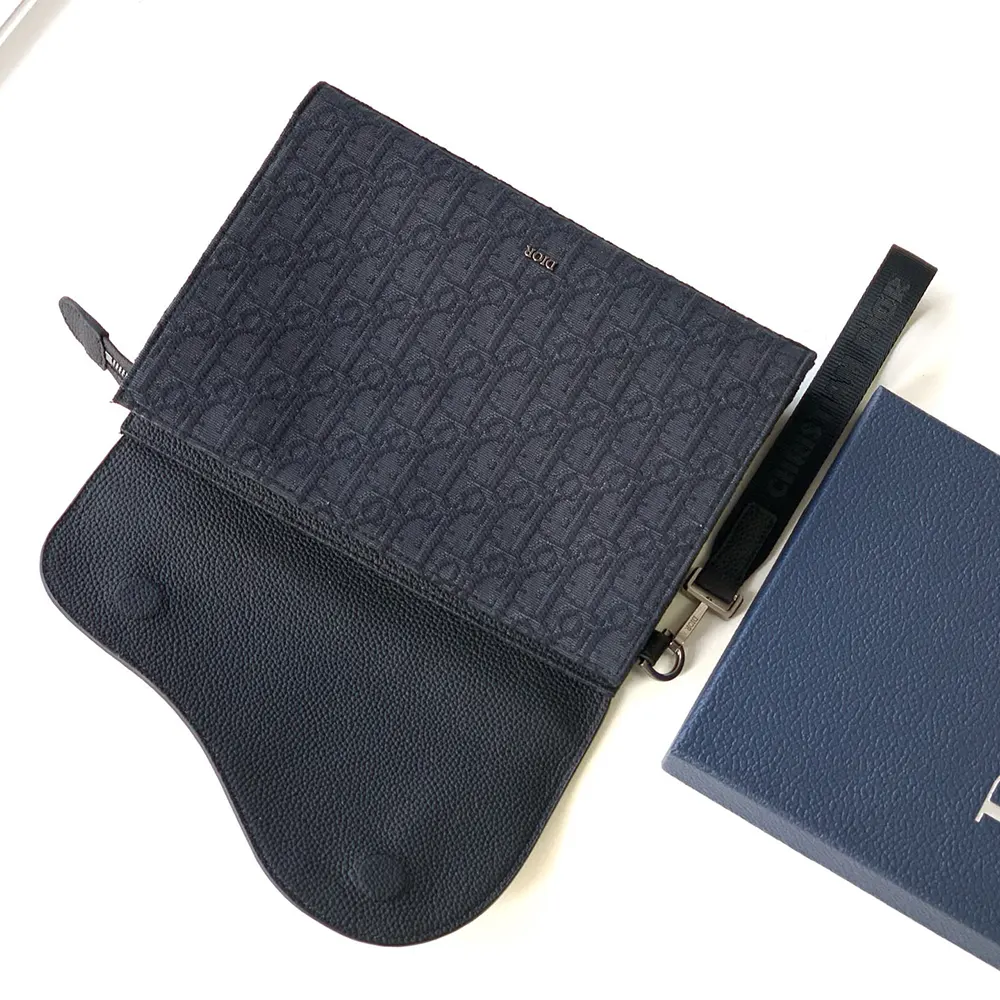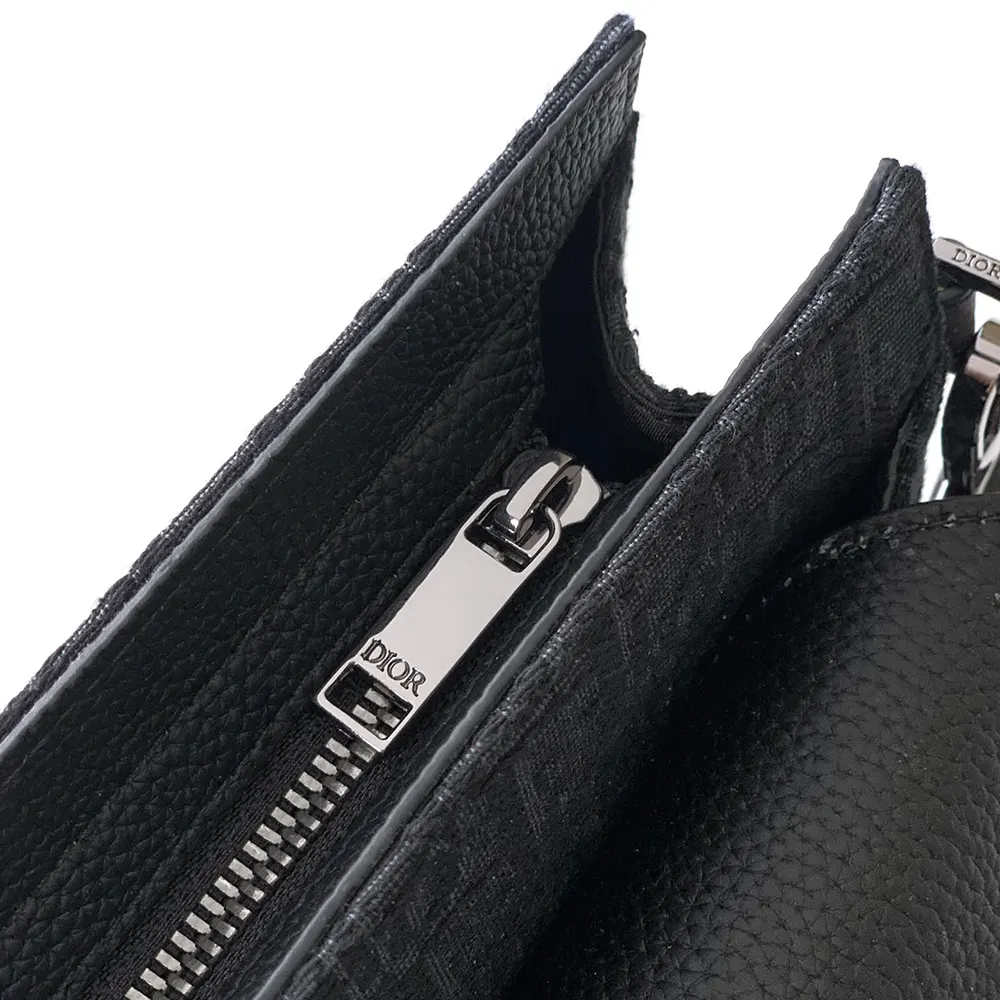 Dior Men Saddle A5 Triangle Pouch Black Dior Oblique Jacquard and Black Grained Calfskin