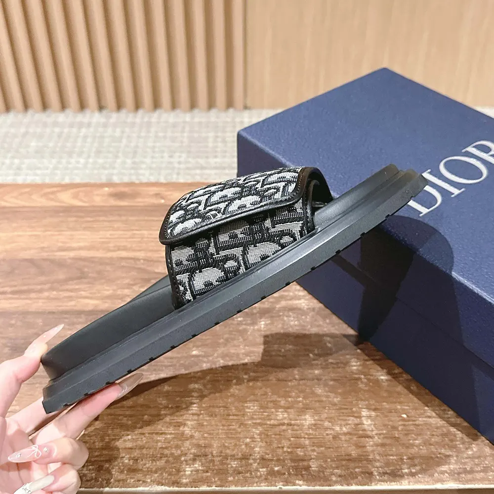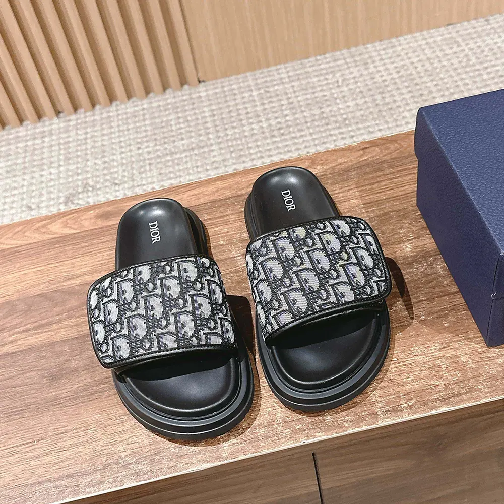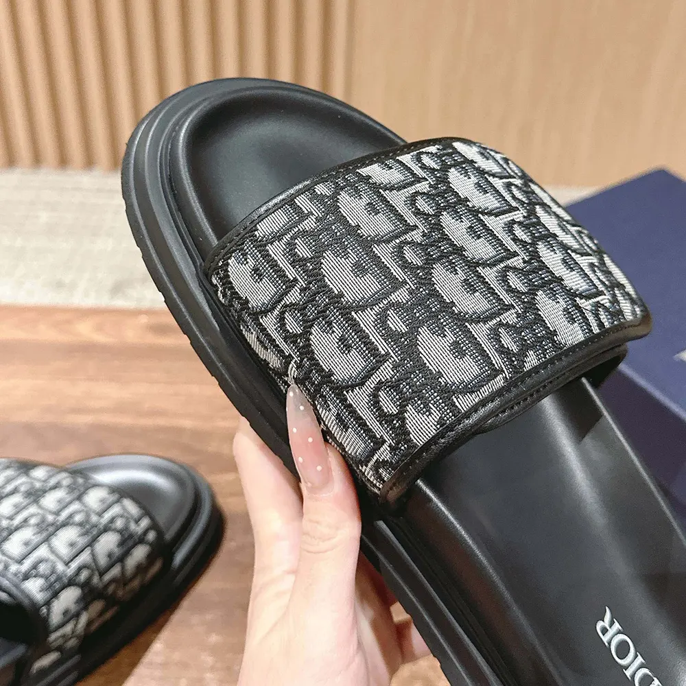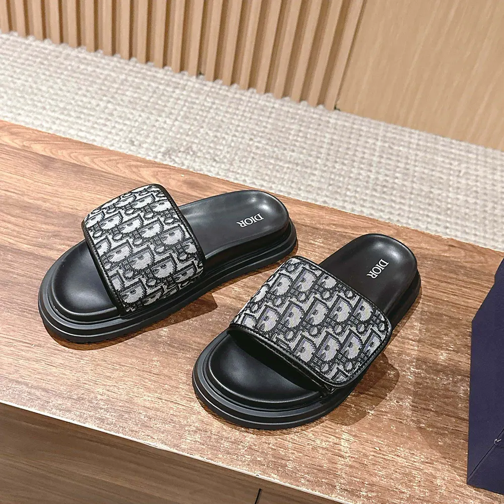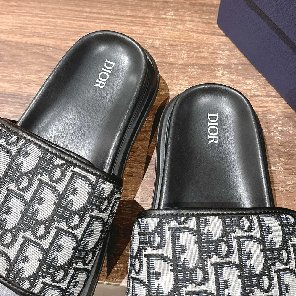Dior Unisex Aqua Sandal Beige and Black Dior Oblique Jacquard