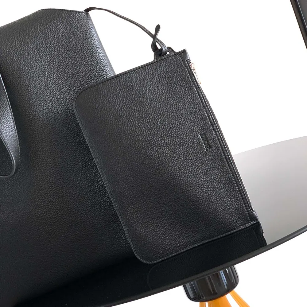 - The tonal leather top handles allow the bag to be worn over the shoulder.